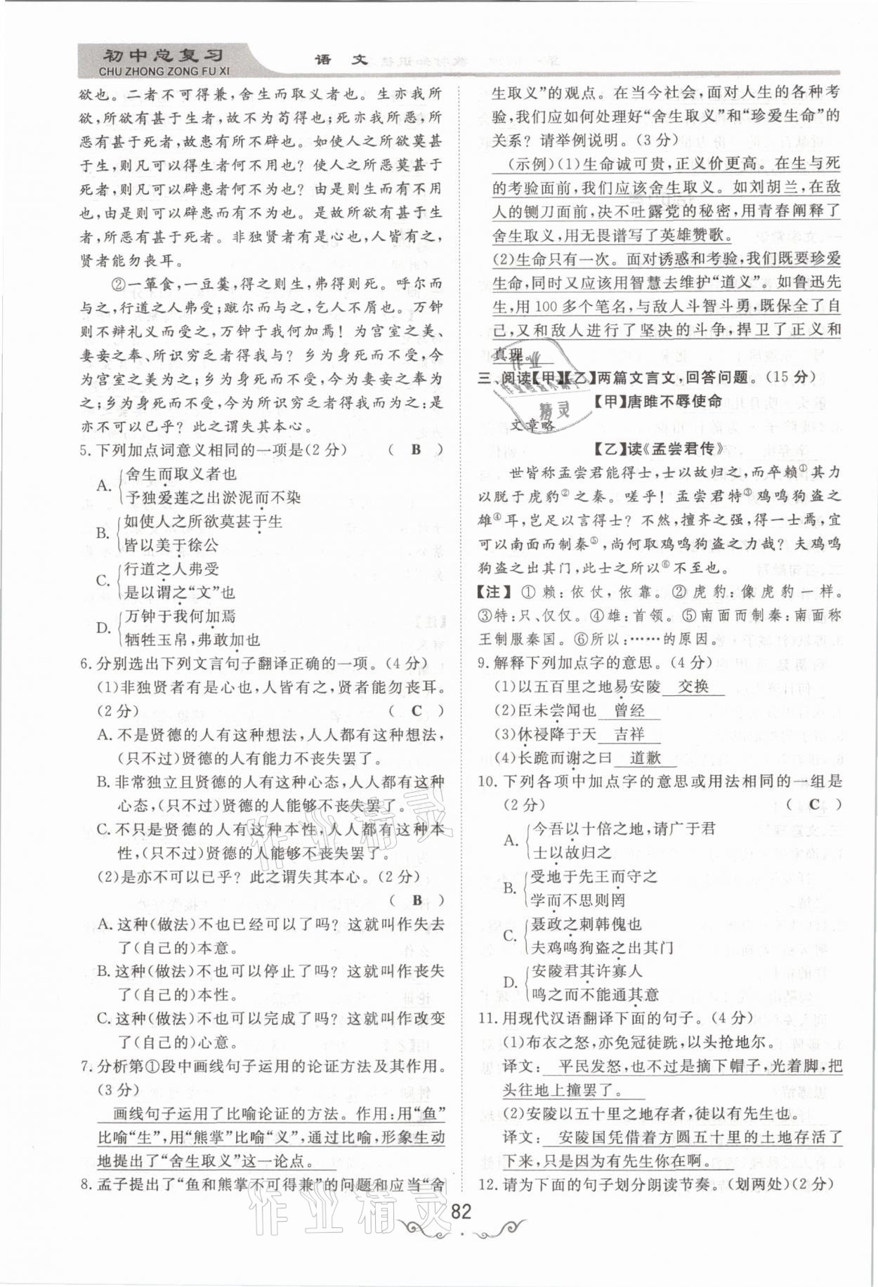- 参考答案第82页