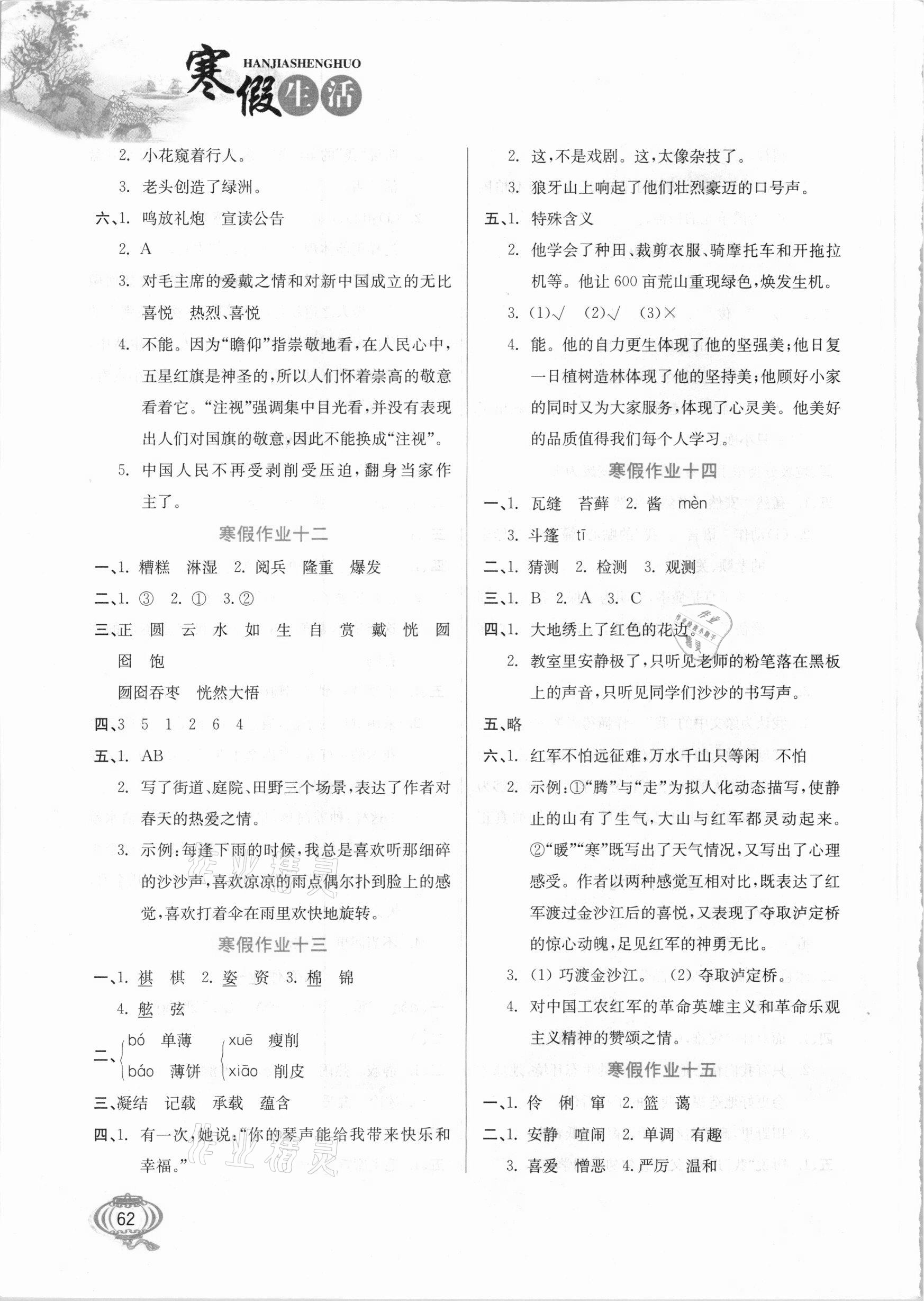 2021年寒假生活六年级语文河北美术出版社