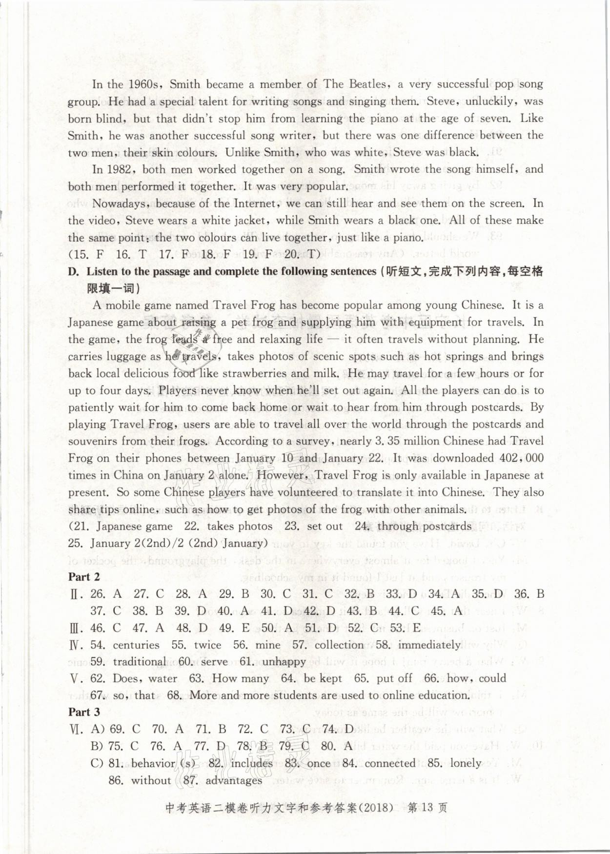 注:目前有些书本章节名称可能整理的还不是很完善,但都是按照顺序排列的,请同学们按照顺序仔细查找。练习册 2021年走向成功上海市各区中考考前质量抽查试卷精编英语 答案主要是用来给同学们做完题方便对答案用的,请勿直接抄袭。