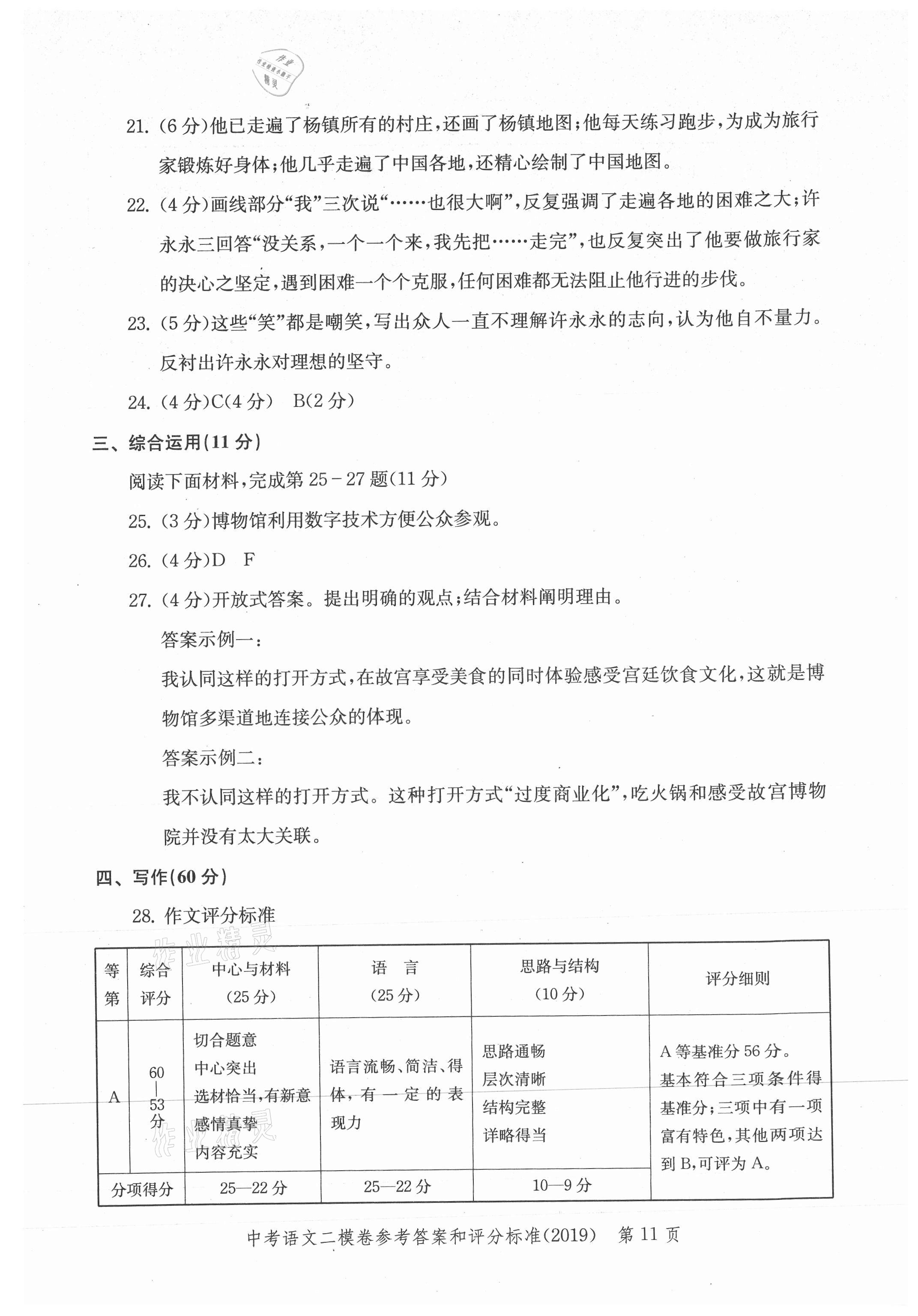 2021年走向成功上海市各区中考考前质量抽查试卷精编语文合订本