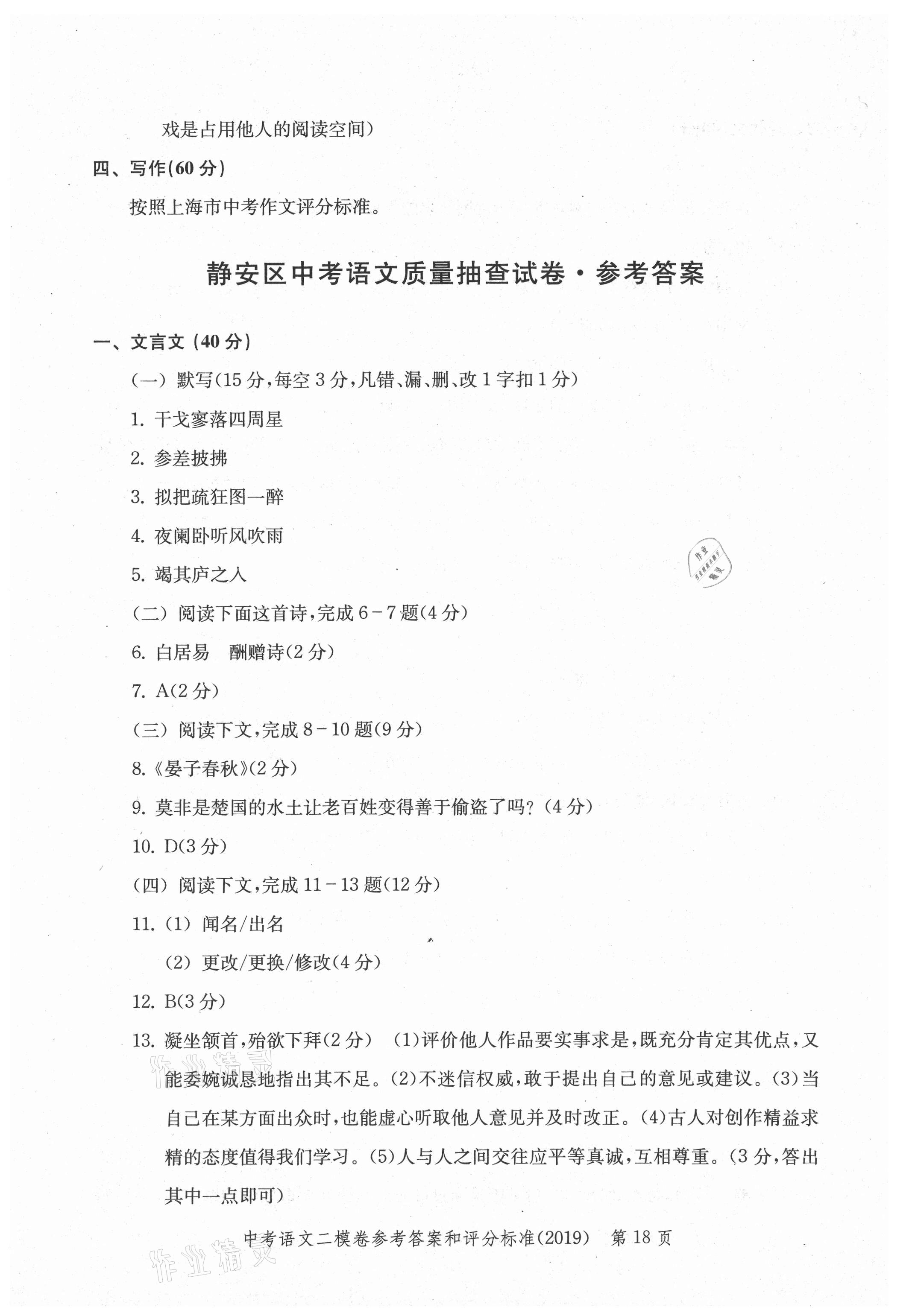 注:目前有些书本章节名称可能整理的还不是很完善,但都是按照顺序排列的,请同学们按照顺序仔细查找。练习册 2021年走向成功上海市各区中考考前质量抽查试卷精编语文合订本 答案主要是用来给同学们做完题方便对答案用的,请勿直接抄袭。