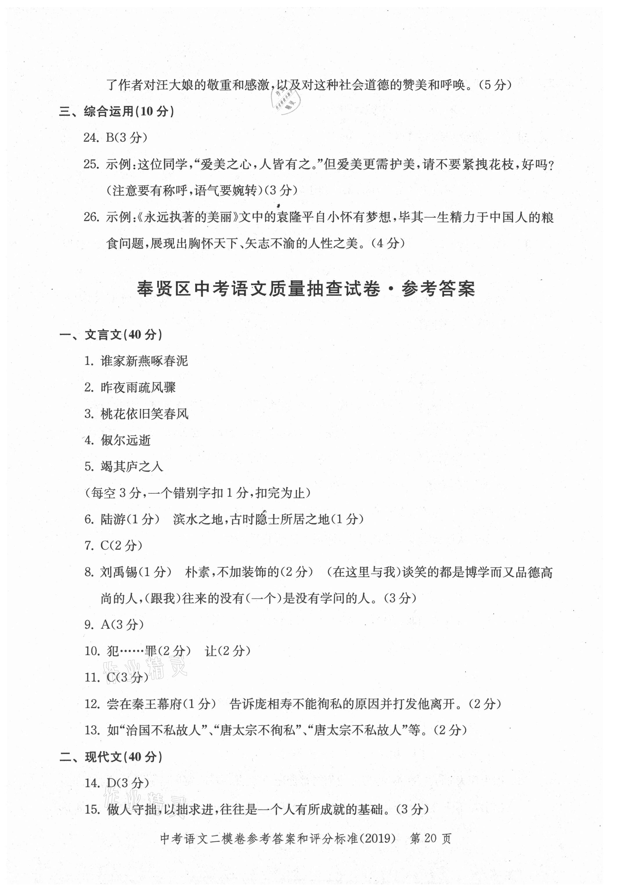 2021年走向成功上海市各区中考考前质量抽查试卷精编语文合订本