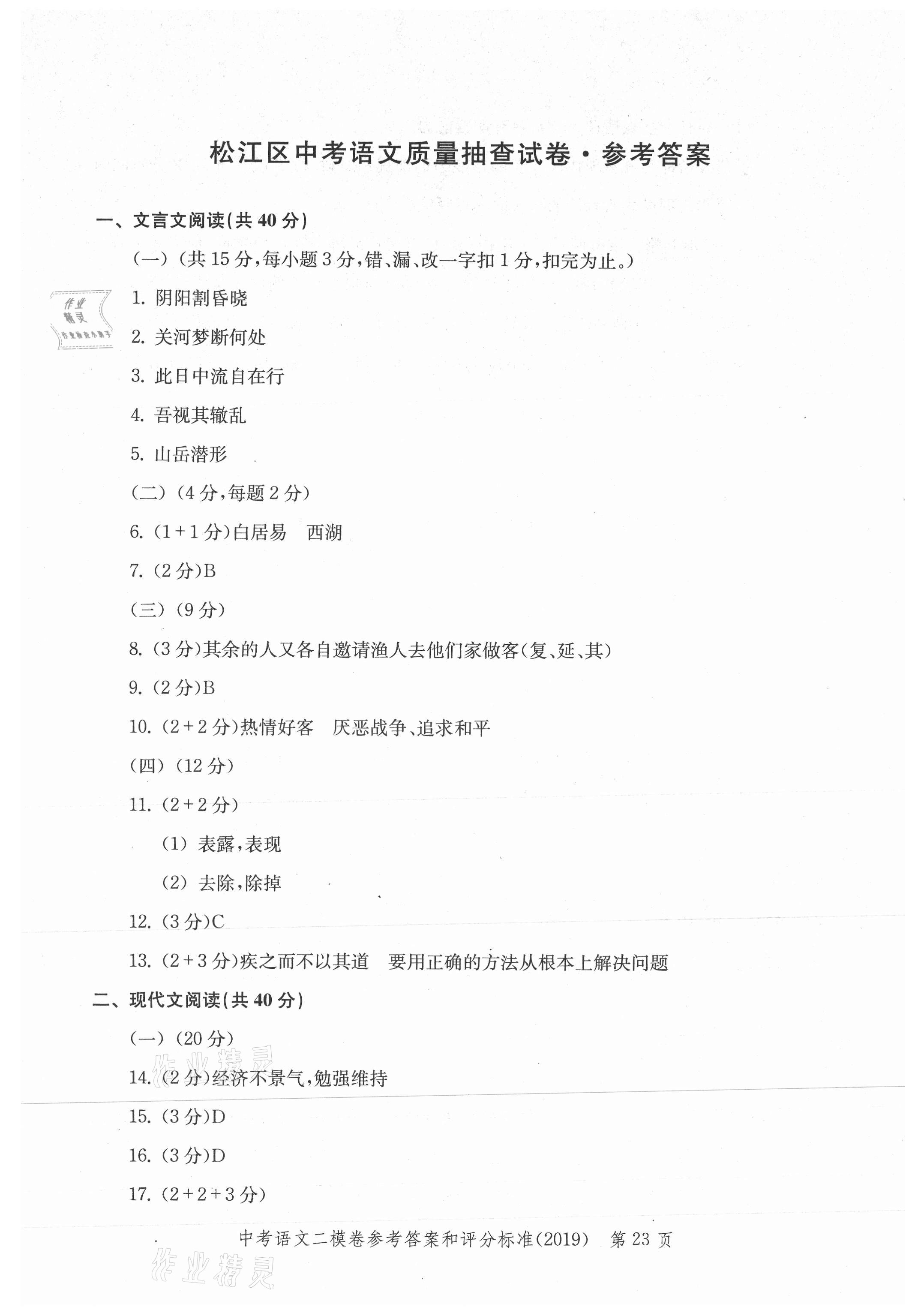 2021年走向成功上海市各区中考考前质量抽查试卷精编语文合订本