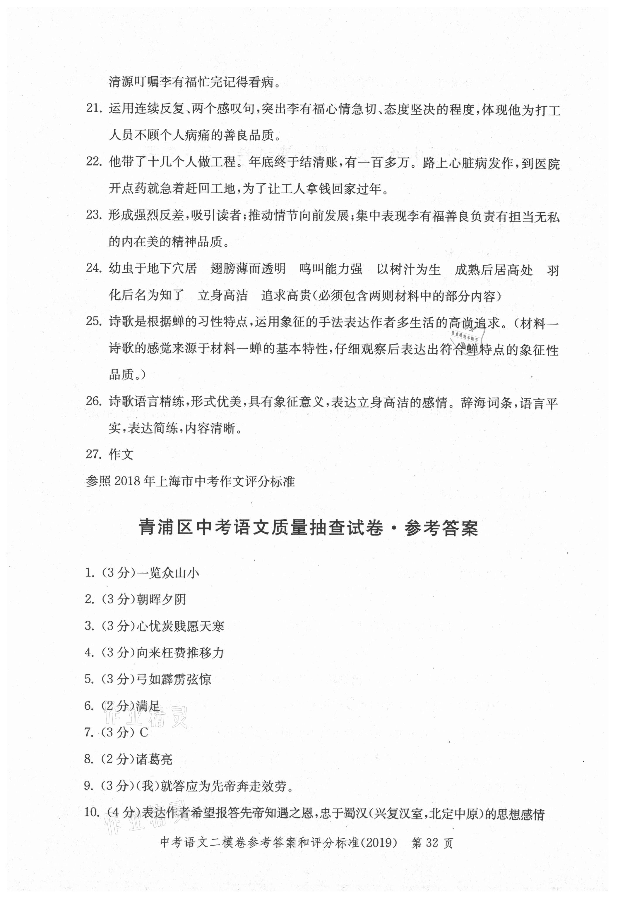 2021年走向成功上海市各区中考考前质量抽查试卷精编语文合订本