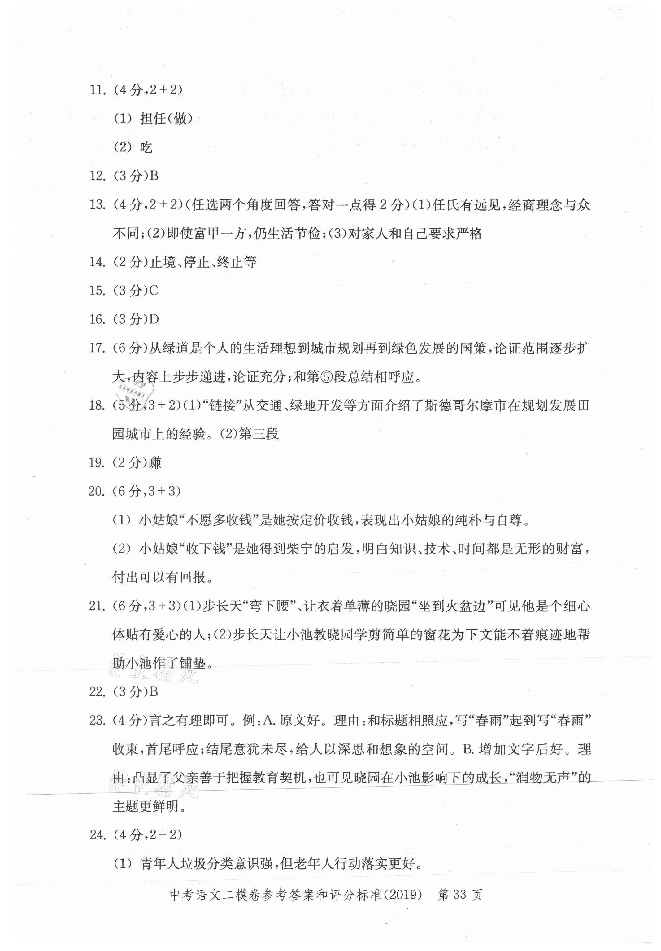 2021年走向成功上海市各区中考考前质量抽查试卷精编语文合订本