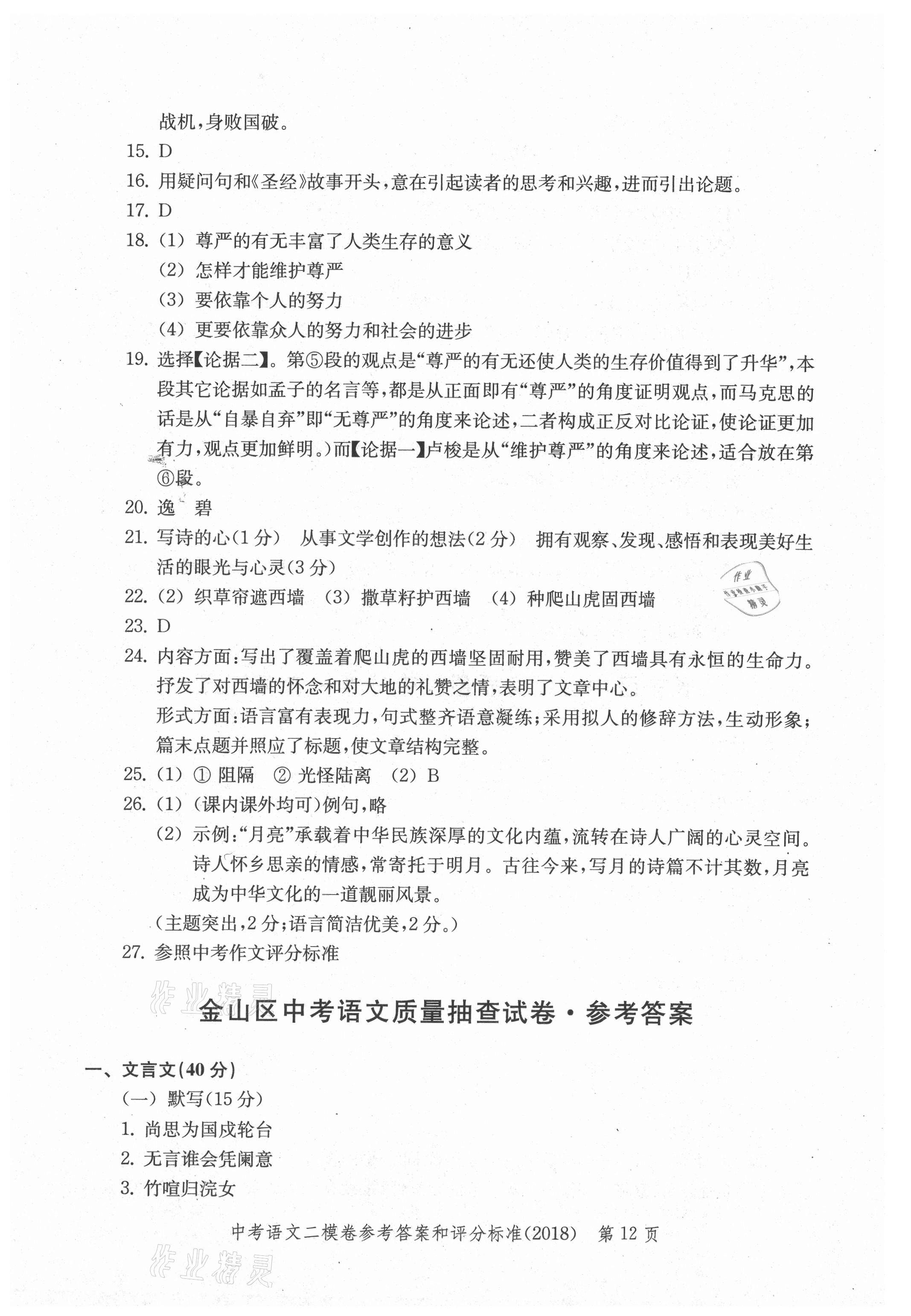2021年走向成功上海市各区中考考前质量抽查试卷精编语文合订本