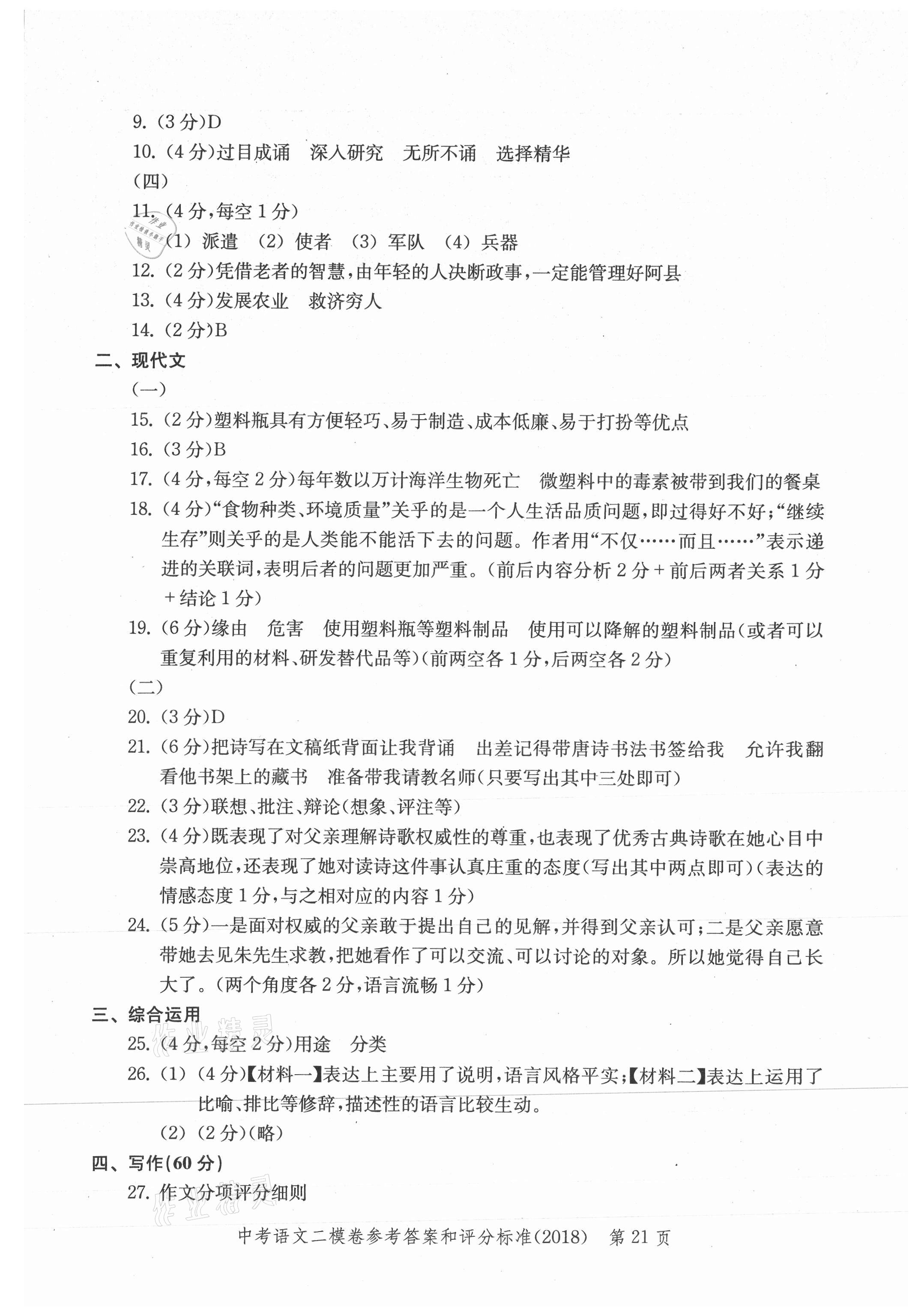 注:目前有些书本章节名称可能整理的还不是很完善,但都是按照顺序排列的,请同学们按照顺序仔细查找。练习册 2021年走向成功上海市各区中考考前质量抽查试卷精编语文合订本 答案主要是用来给同学们做完题方便对答案用的,请勿直接抄袭。