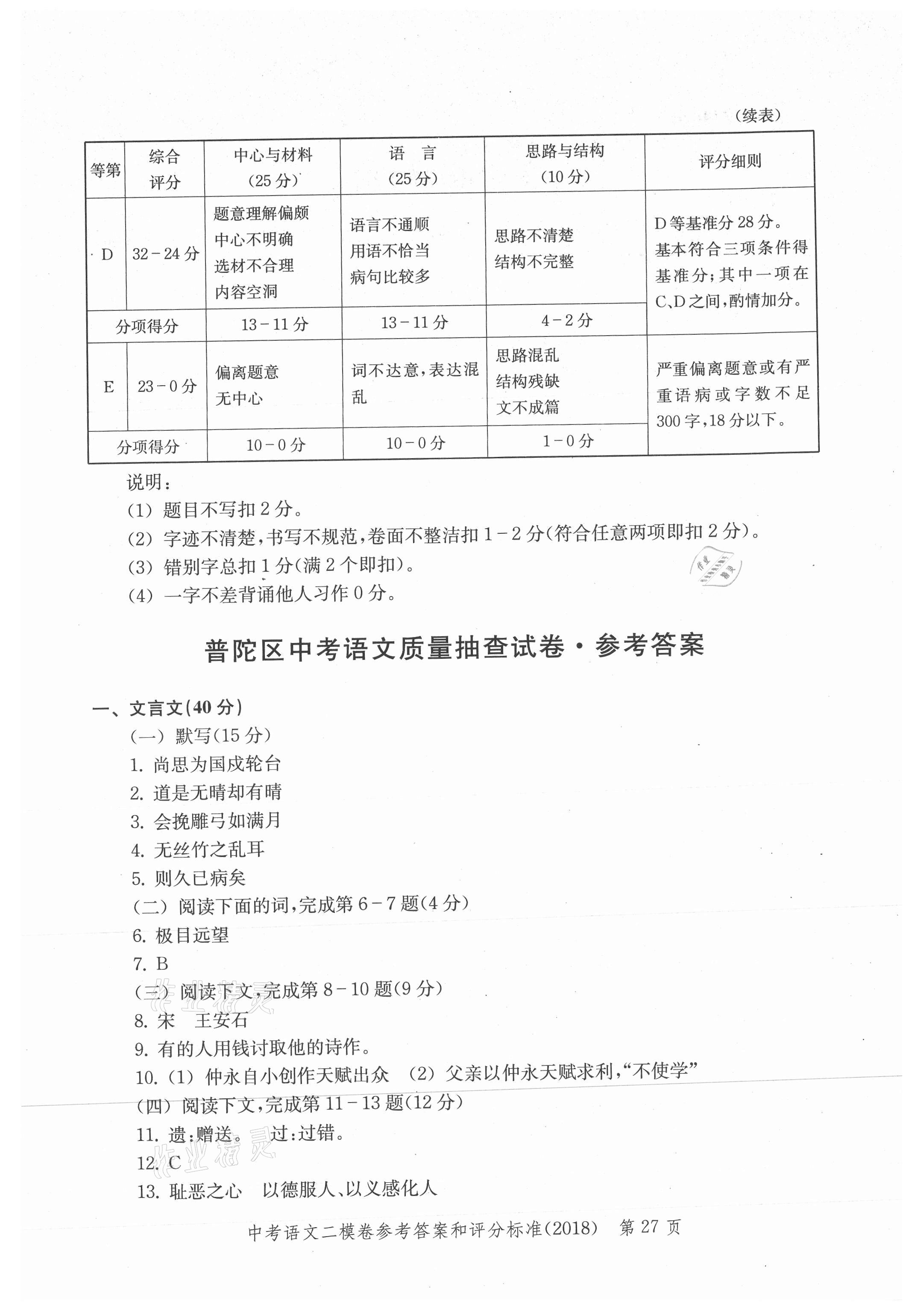 2021年走向成功上海市各区中考考前质量抽查试卷精编语文合订本