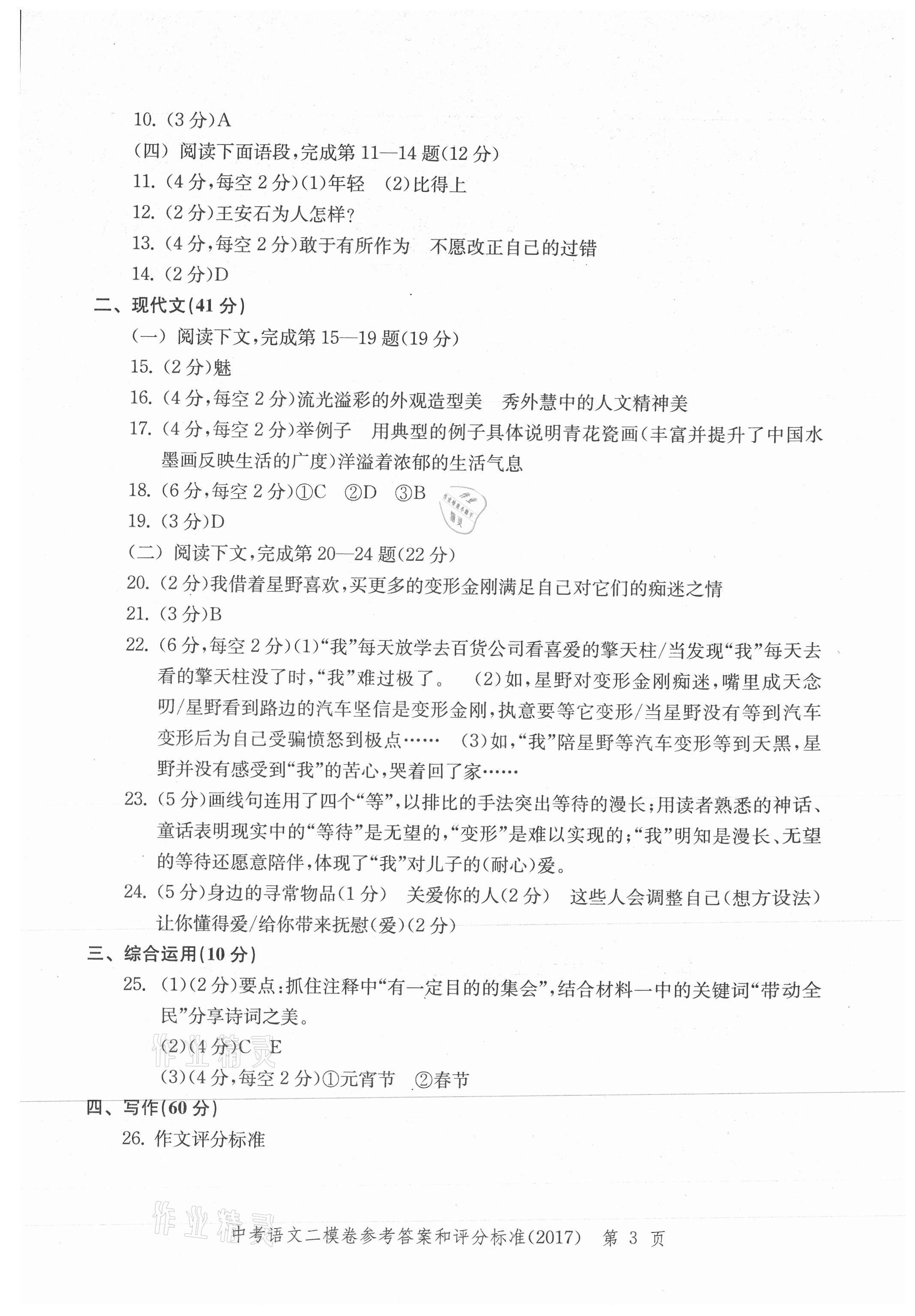 2021年走向成功上海市各区中考考前质量抽查试卷精编语文合订本