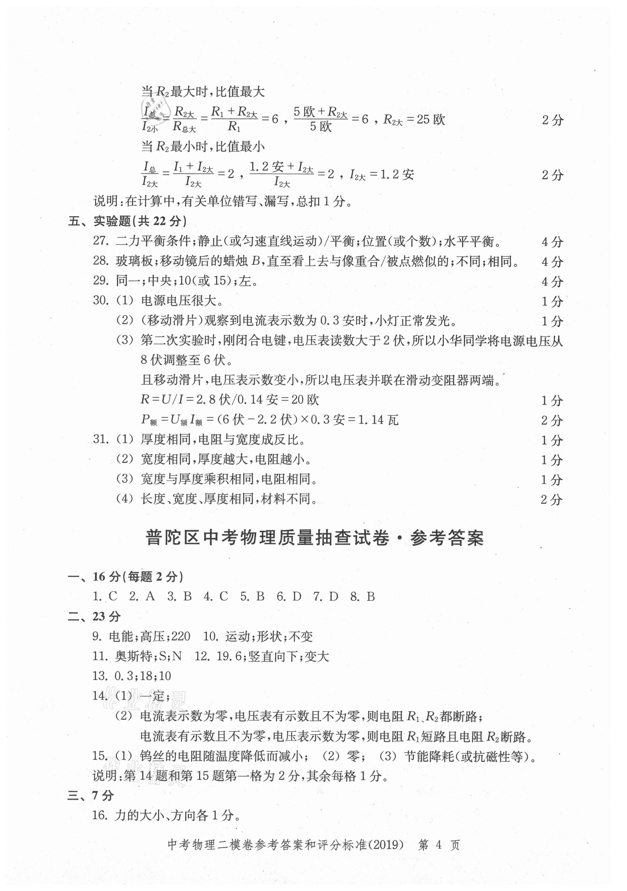 2021年走向成功上海市各区中考考前质量抽查试卷精编物理合订本