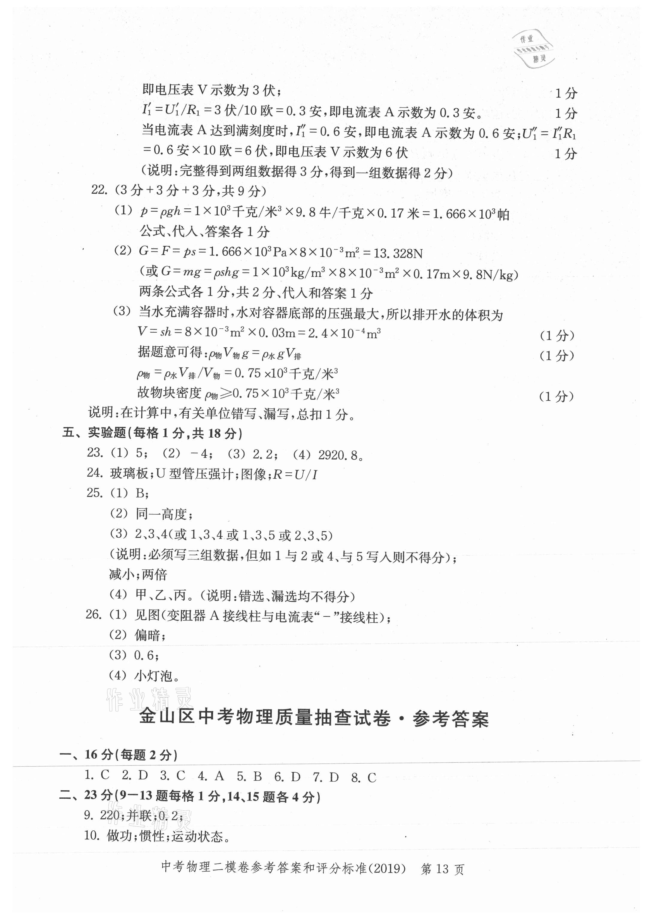 2021年走向成功上海市各区中考考前质量抽查试卷精编物理合订本