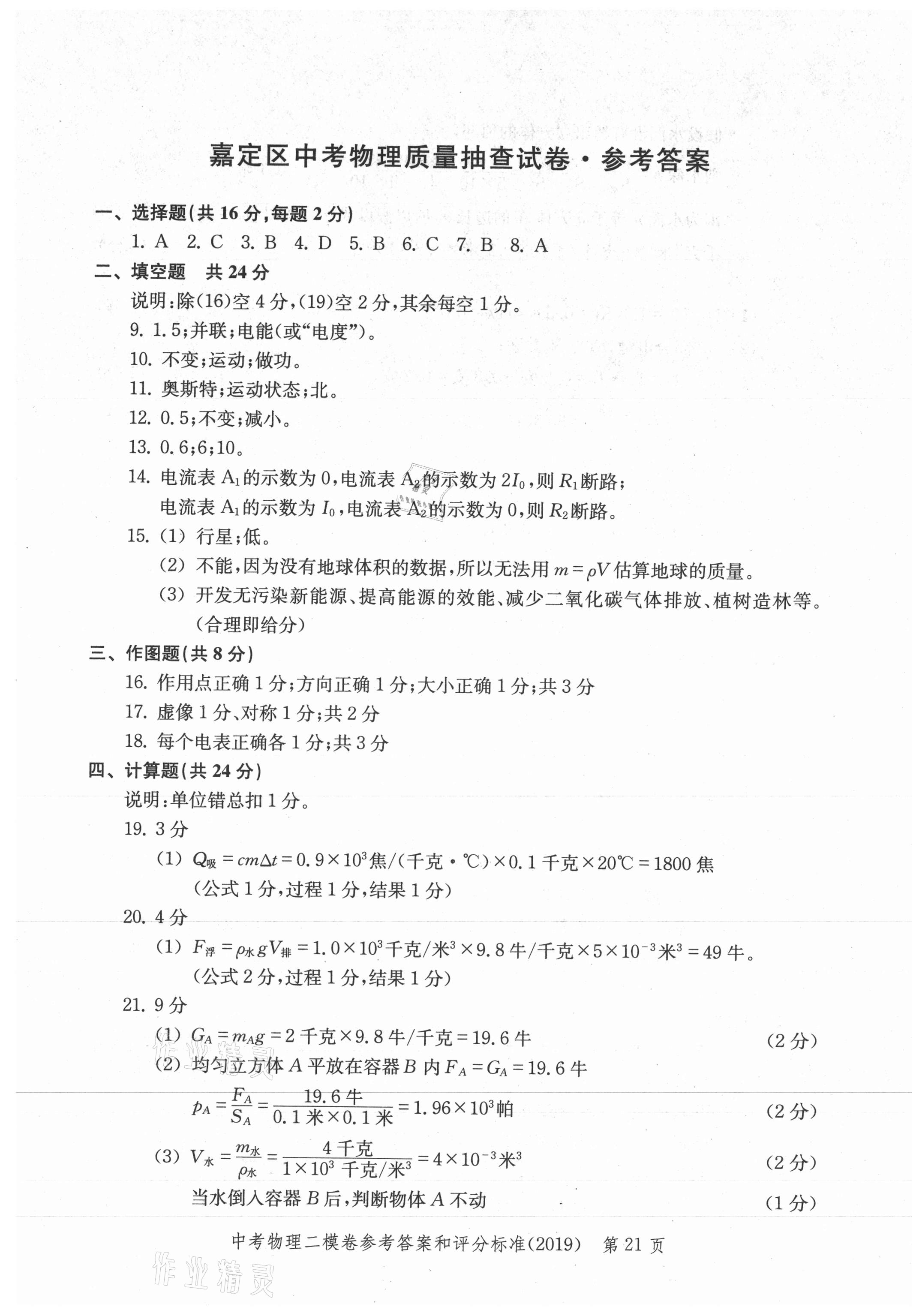 注:目前有些书本章节名称可能整理的还不是很完善,但都是按照顺序排列的,请同学们按照顺序仔细查找。练习册 2021年走向成功上海市各区中考考前质量抽查试卷精编物理合订本 答案主要是用来给同学们做完题方便对答案用的,请勿直接抄袭。