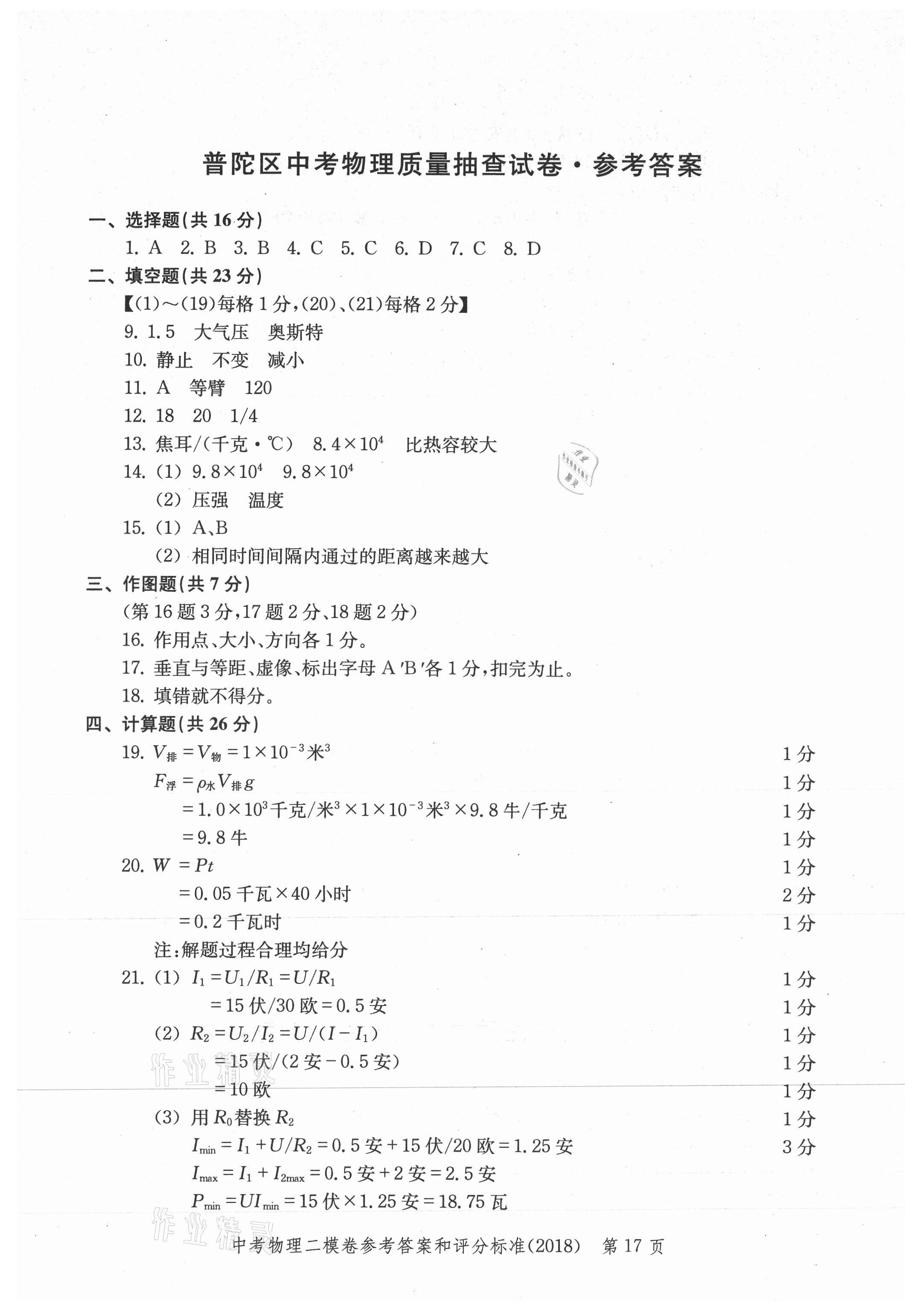 2021年走向成功上海市各区中考考前质量抽查试卷精编物理合订本