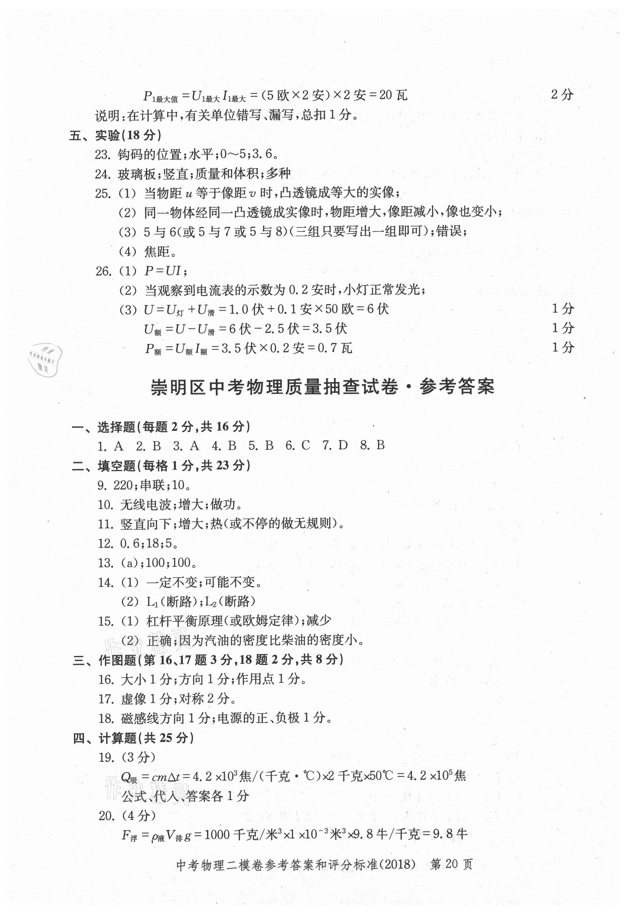 2021年走向成功上海市各区中考考前质量抽查试卷精编物理合订本