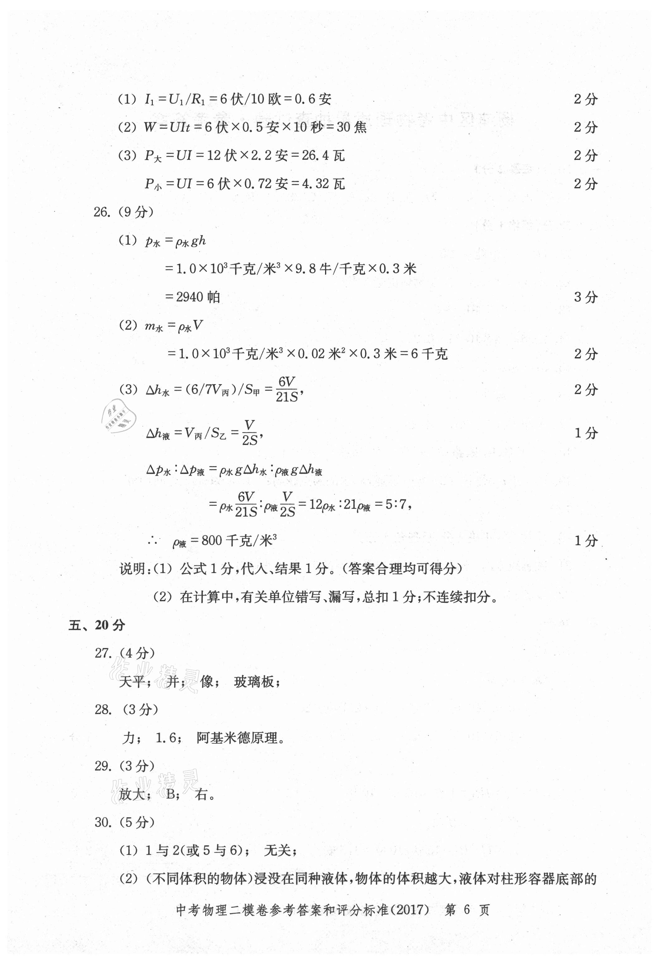 2021年走向成功上海市各区中考考前质量抽查试卷精编物理合订本