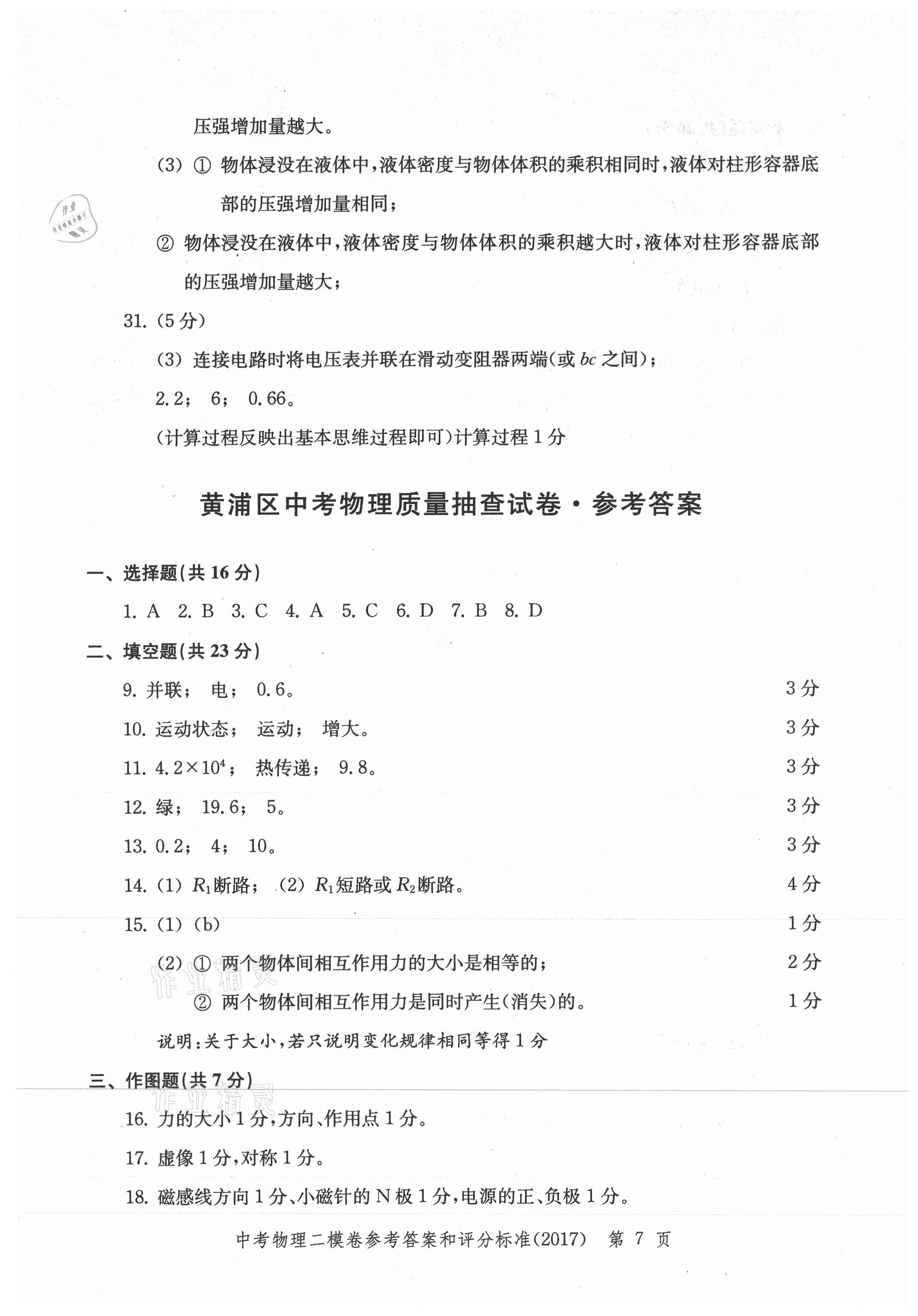 2021年走向成功上海市各区中考考前质量抽查试卷精编物理合订本