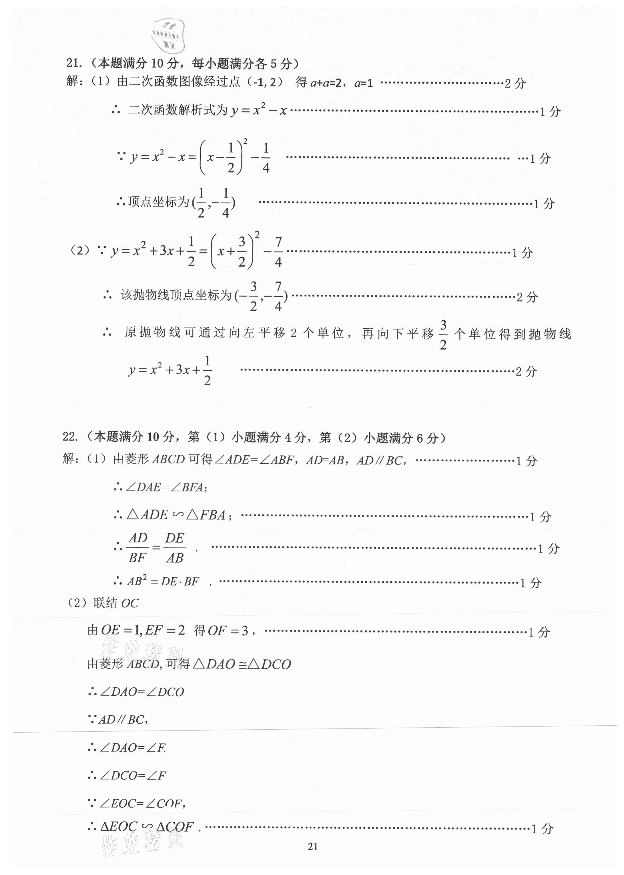 注:目前有些书本章节名称可能整理的还不是很完善,但都是按照顺序排列的,请同学们按照顺序仔细查找。练习册 2021年初三年级数学试卷汇编 答案主要是用来给同学们做完题方便对答案用的,请勿直接抄袭。