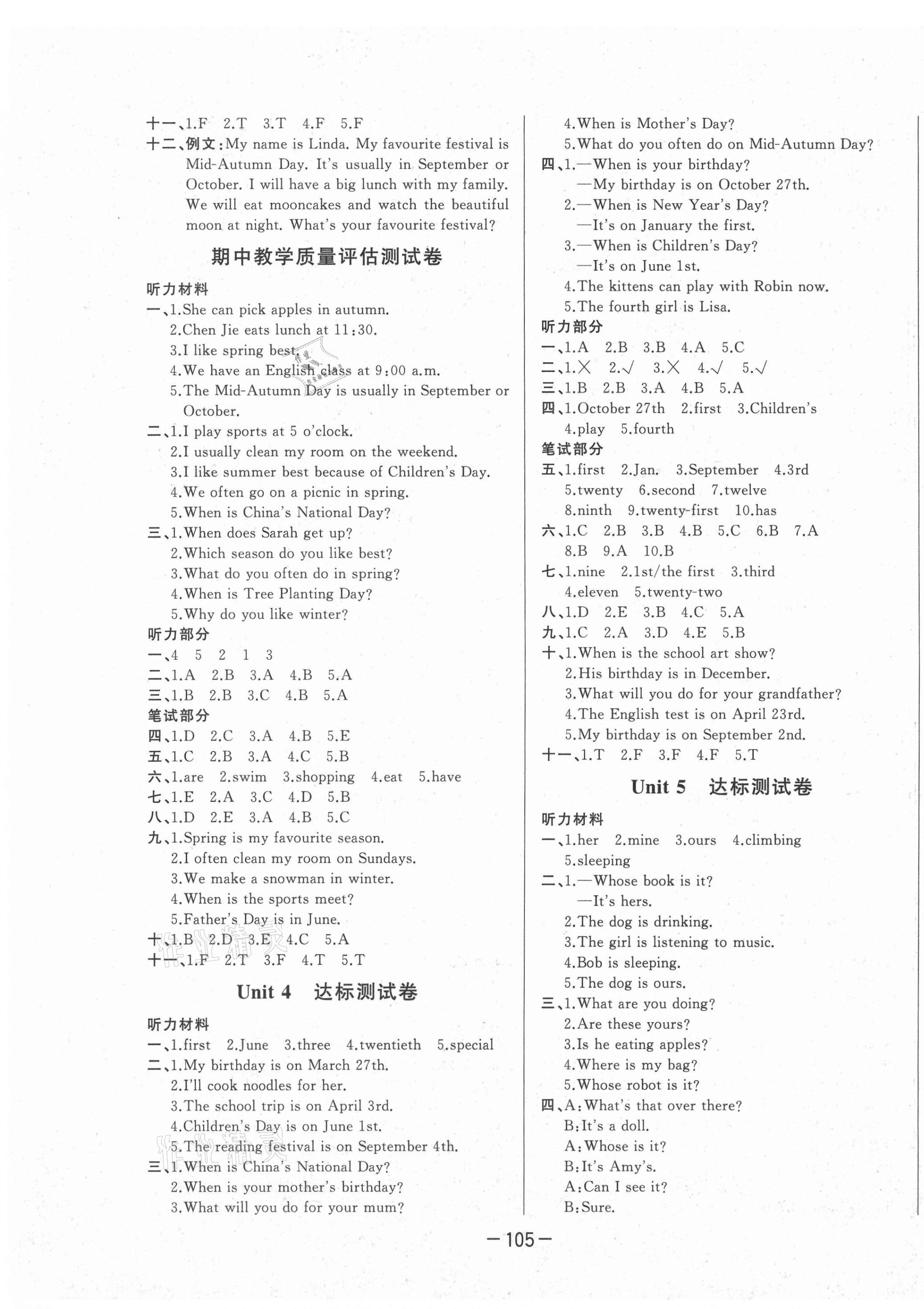 注:目前有些书本章节名称可能整理的还不是很完善,但都是按照顺序排列的,请同学们按照顺序仔细查找。练习册 2021年A加优化作业本五年级英语下册人教PEP版江西专版 答案主要是用来给同学们做完题方便对答案用的,请勿直接抄袭。