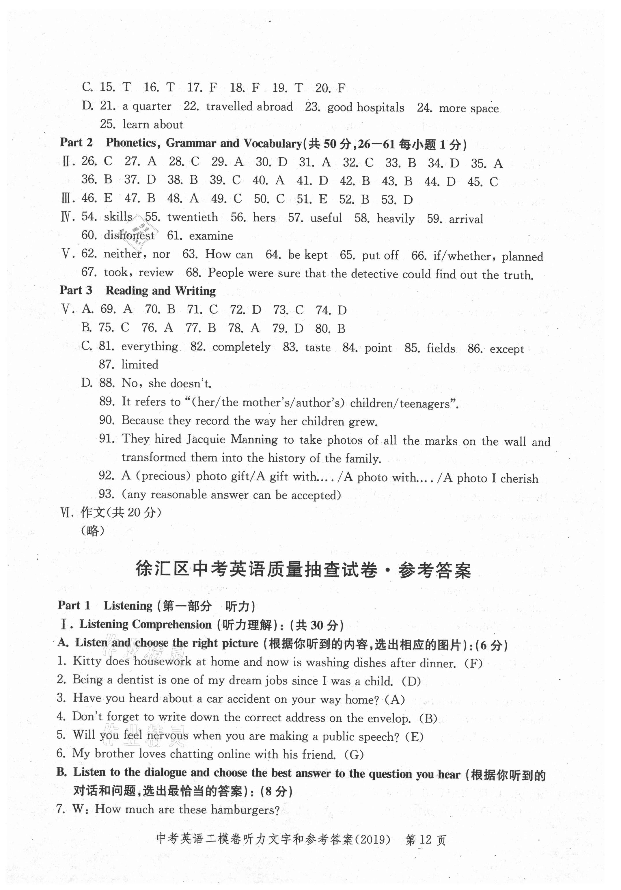 注:目前有些书本章节名称可能整理的还不是很完善,但都是按照顺序排列的,请同学们按照顺序仔细查找。练习册 2021年走向成功上海市各区中考考前质量抽查试卷精编英语合订本 答案主要是用来给同学们做完题方便对答案用的,请勿直接抄袭。