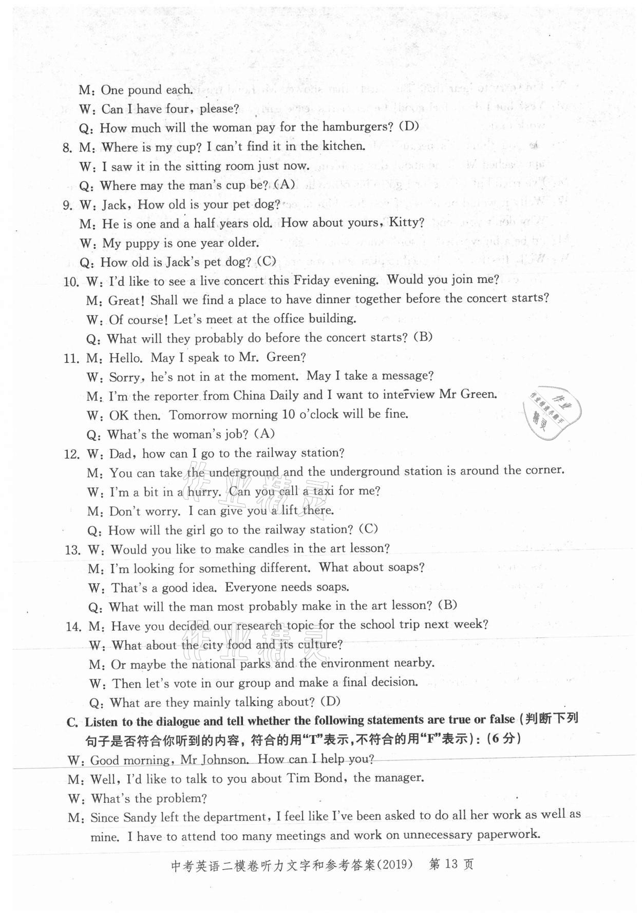 注:目前有些书本章节名称可能整理的还不是很完善,但都是按照顺序排列的,请同学们按照顺序仔细查找。练习册 2021年走向成功上海市各区中考考前质量抽查试卷精编英语合订本 答案主要是用来给同学们做完题方便对答案用的,请勿直接抄袭。