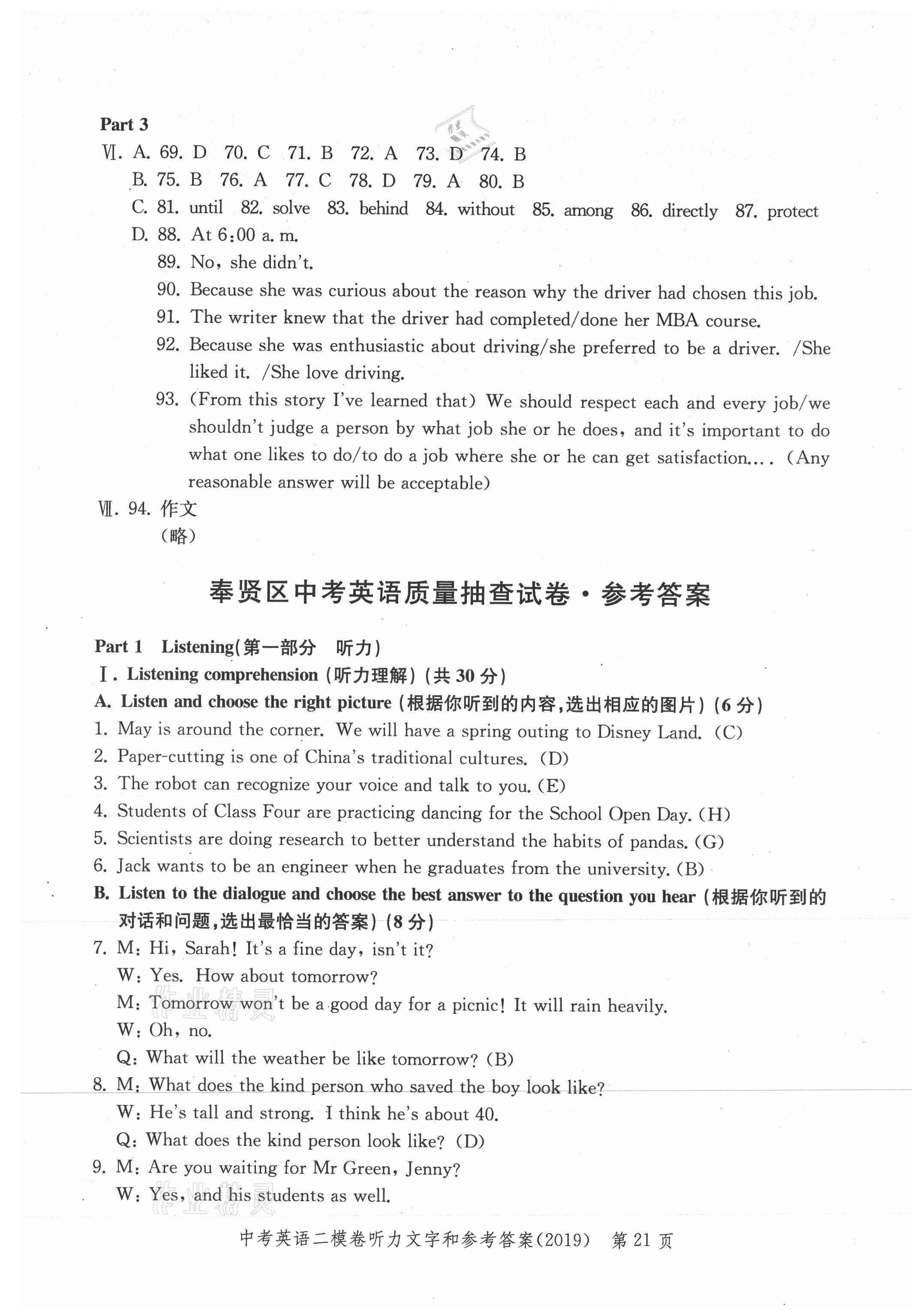 注:目前有些书本章节名称可能整理的还不是很完善,但都是按照顺序排列的,请同学们按照顺序仔细查找。练习册 2021年走向成功上海市各区中考考前质量抽查试卷精编英语合订本 答案主要是用来给同学们做完题方便对答案用的,请勿直接抄袭。