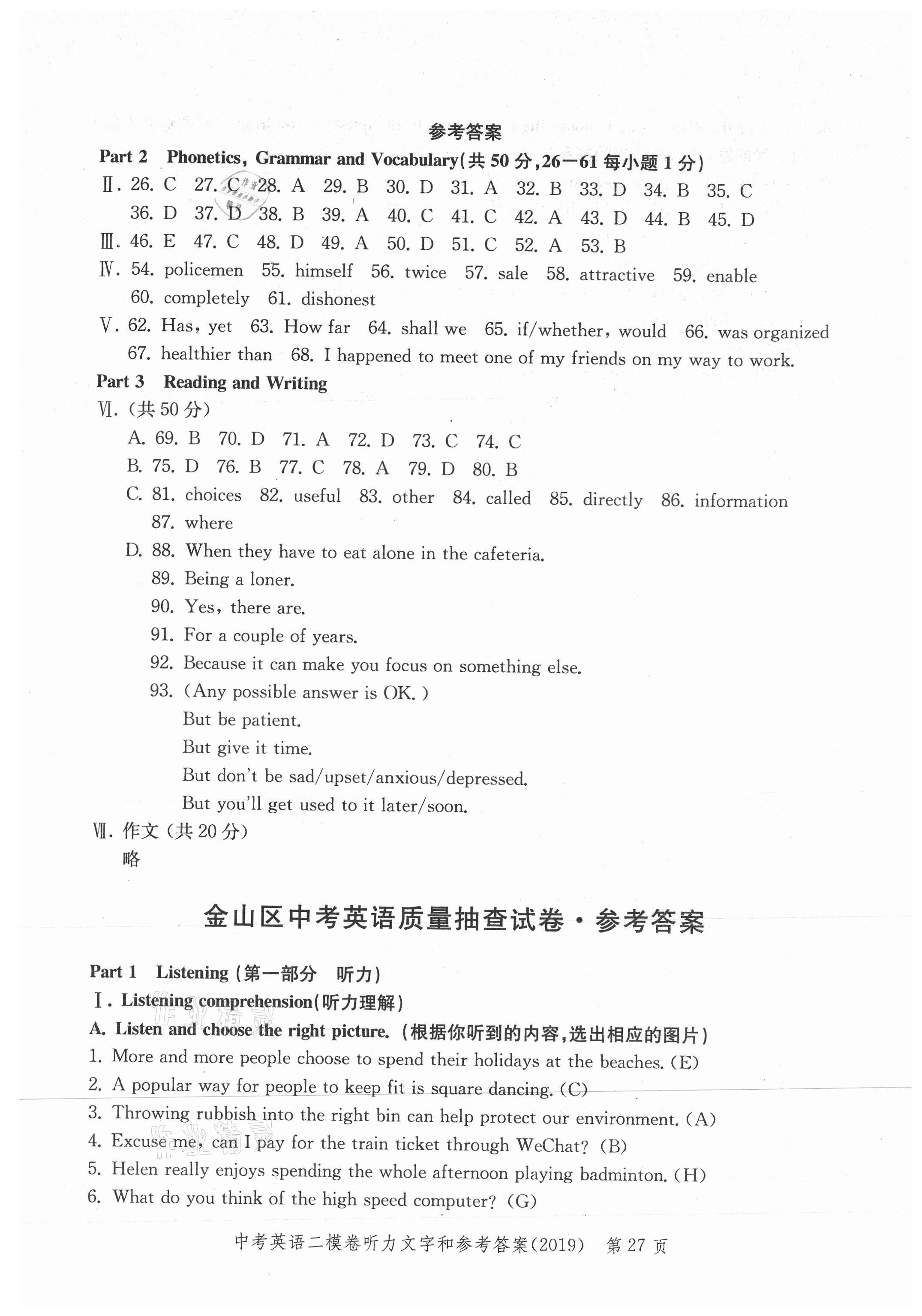 注:目前有些书本章节名称可能整理的还不是很完善,但都是按照顺序排列的,请同学们按照顺序仔细查找。练习册 2021年走向成功上海市各区中考考前质量抽查试卷精编英语合订本 答案主要是用来给同学们做完题方便对答案用的,请勿直接抄袭。