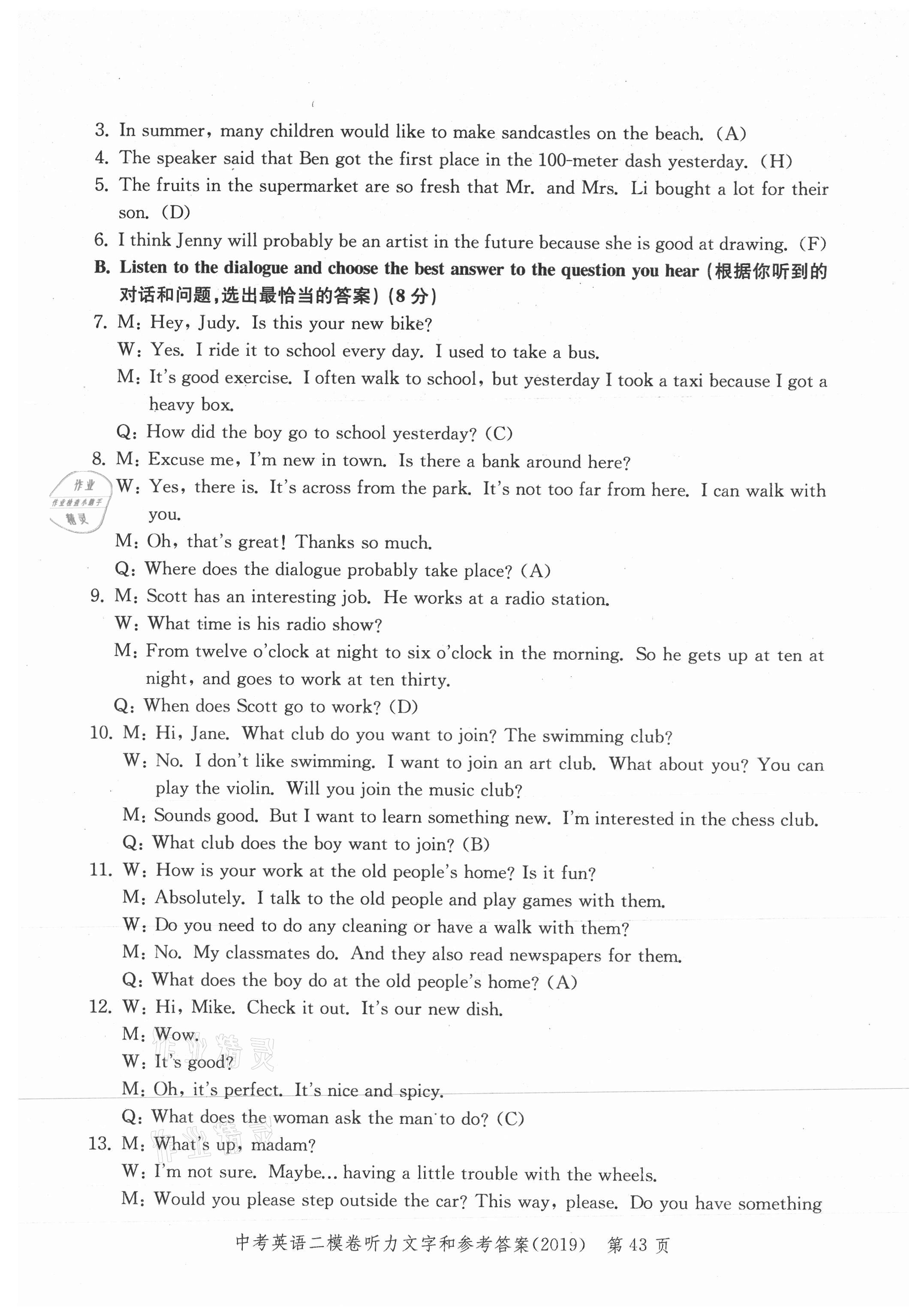 注:目前有些书本章节名称可能整理的还不是很完善,但都是按照顺序排列的,请同学们按照顺序仔细查找。练习册 2021年走向成功上海市各区中考考前质量抽查试卷精编英语合订本 答案主要是用来给同学们做完题方便对答案用的,请勿直接抄袭。