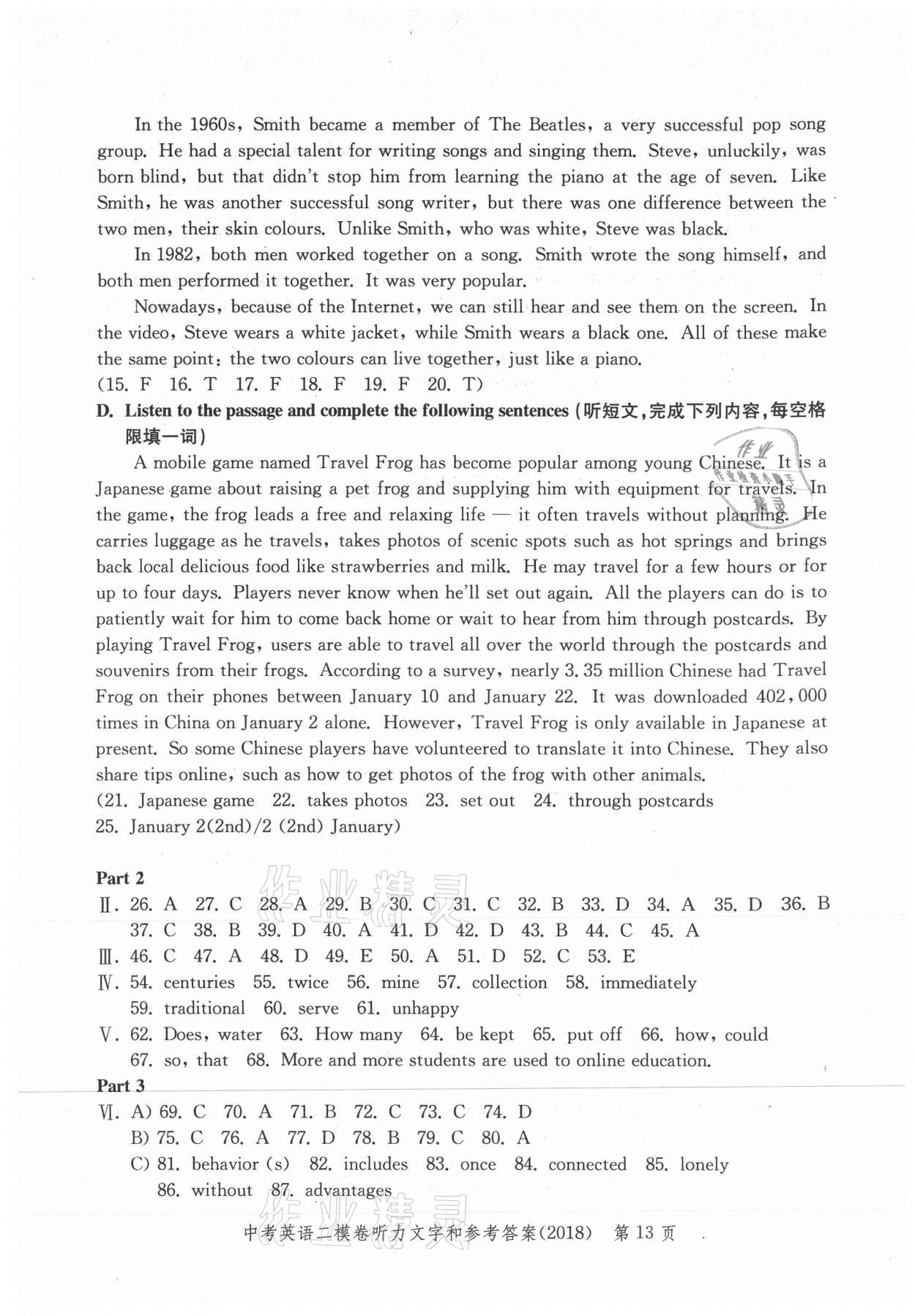 注:目前有些书本章节名称可能整理的还不是很完善,但都是按照顺序排列的,请同学们按照顺序仔细查找。练习册 2021年走向成功上海市各区中考考前质量抽查试卷精编英语合订本 答案主要是用来给同学们做完题方便对答案用的,请勿直接抄袭。