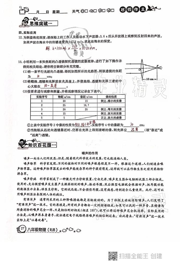 注:目前有些书本章节名称可能整理的还不是很完善,但都是按照顺序排列的,请同学们按照顺序仔细查找。练习册 2021年快乐假期寒假作业八年级物理人教版延边教育出版社 答案主要是用来给同学们做完题方便对答案用的,请勿直接抄袭。
