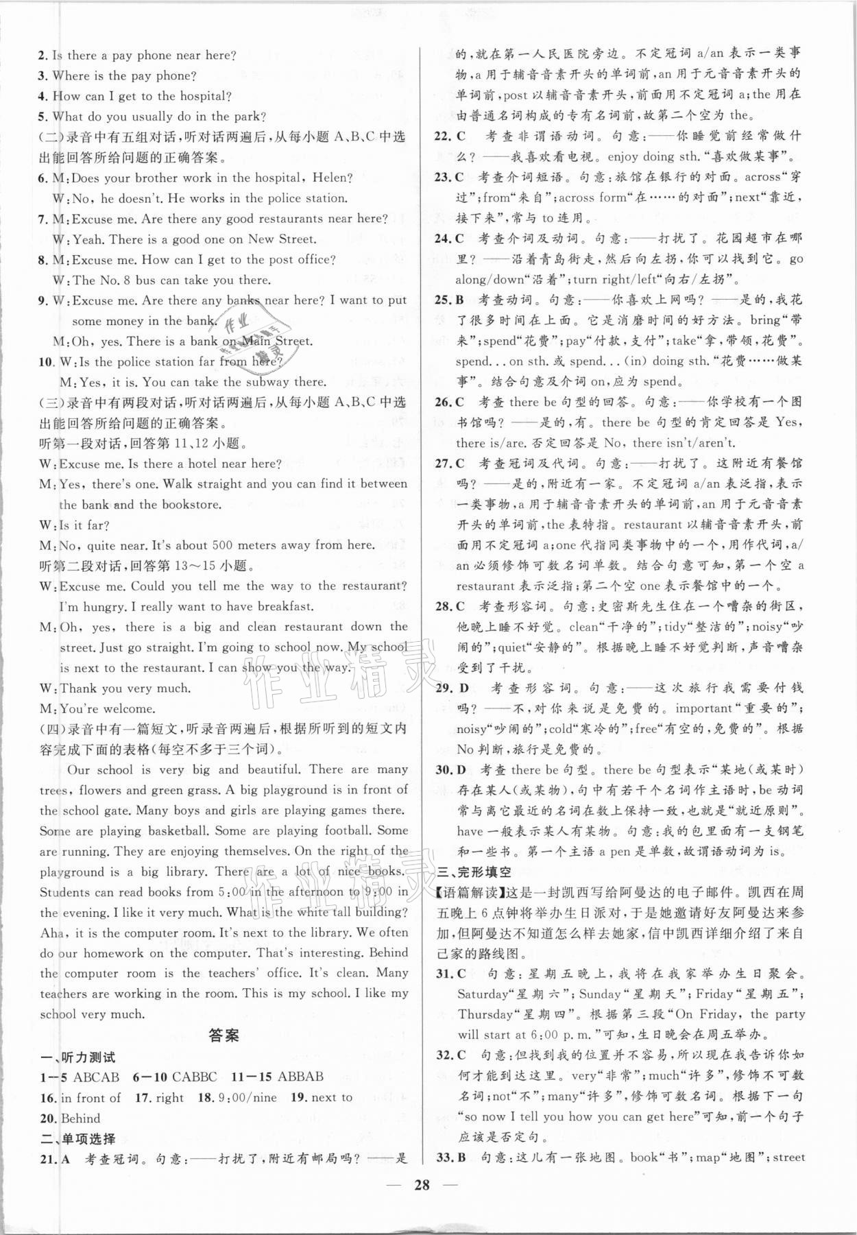 注:目前有些书本章节名称可能整理的还不是很完善,但都是按照顺序排列的,请同学们按照顺序仔细查找。练习册 2021年正大图书练测考六年级英语下册鲁教版 答案主要是用来给同学们做完题方便对答案用的,请勿直接抄袭。