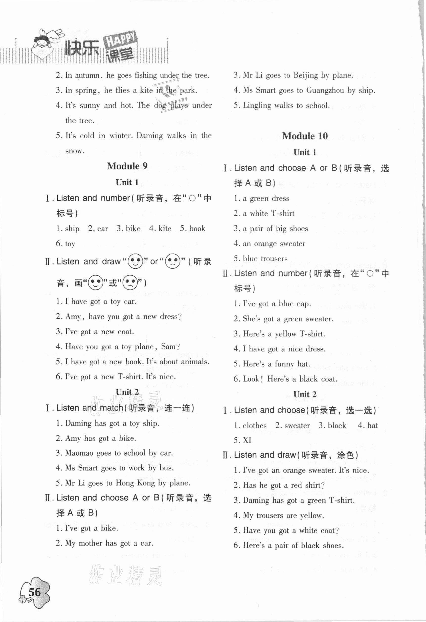 注:目前有些书本章节名称可能整理的还不是很完善,但都是按照顺序排列的,请同学们按照顺序仔细查找。练习册 2021年快乐课堂三年级英语下册外研版 答案主要是用来给同学们做完题方便对答案用的,请勿直接抄袭。