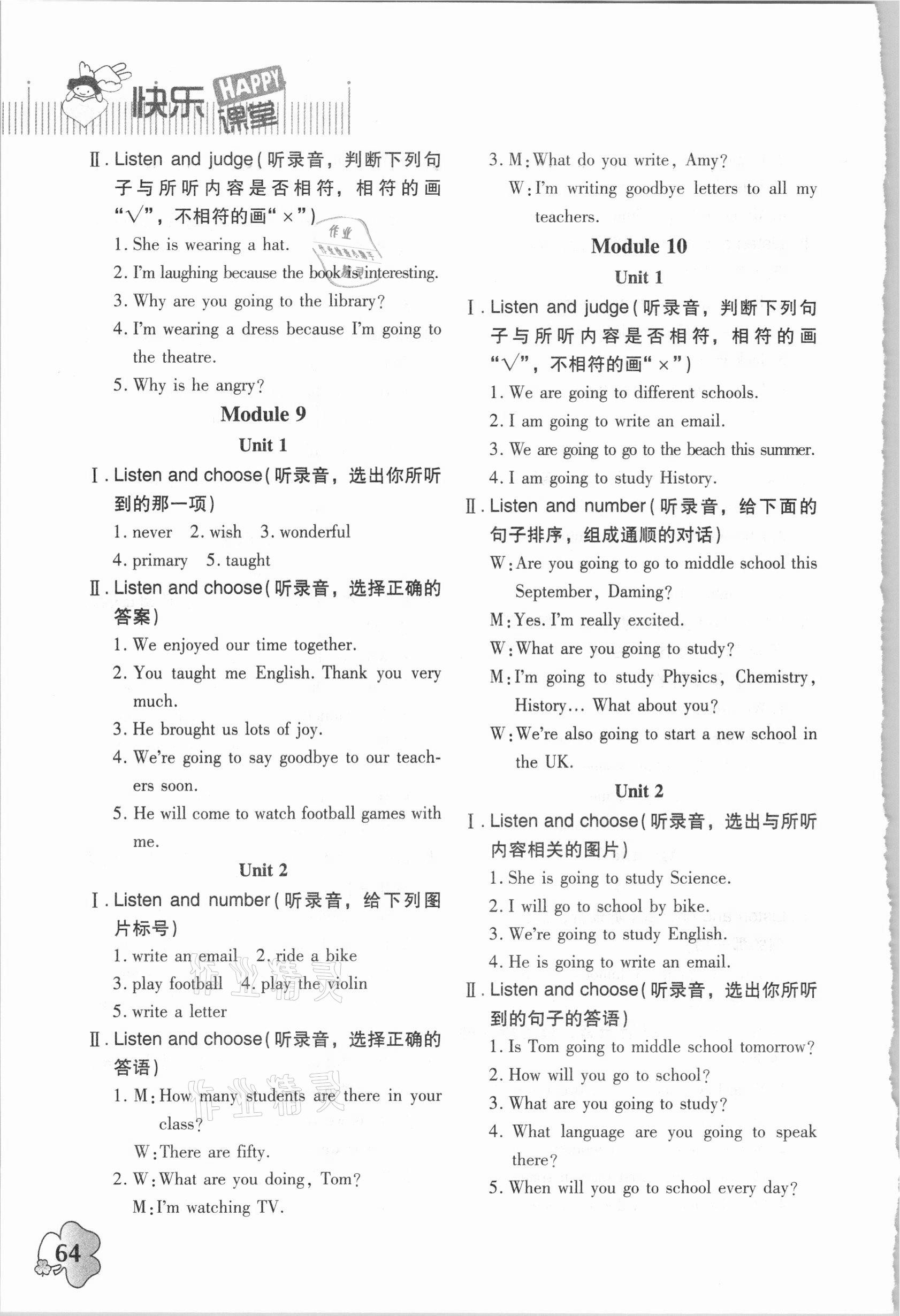 注:目前有些书本章节名称可能整理的还不是很完善,但都是按照顺序排列的,请同学们按照顺序仔细查找。练习册 2021年快乐课堂六年级英语下册外研版 答案主要是用来给同学们做完题方便对答案用的,请勿直接抄袭。
