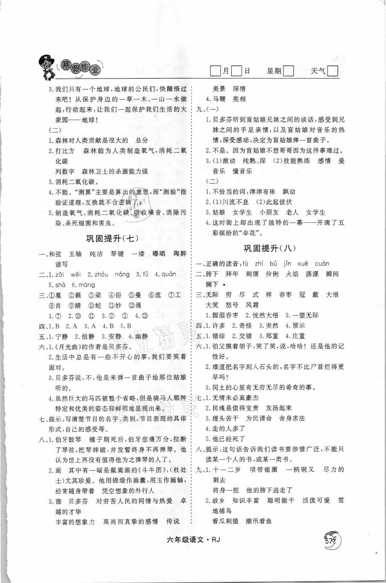 2021年假期自主学习六年级语文北京艺术与科学电子出版社