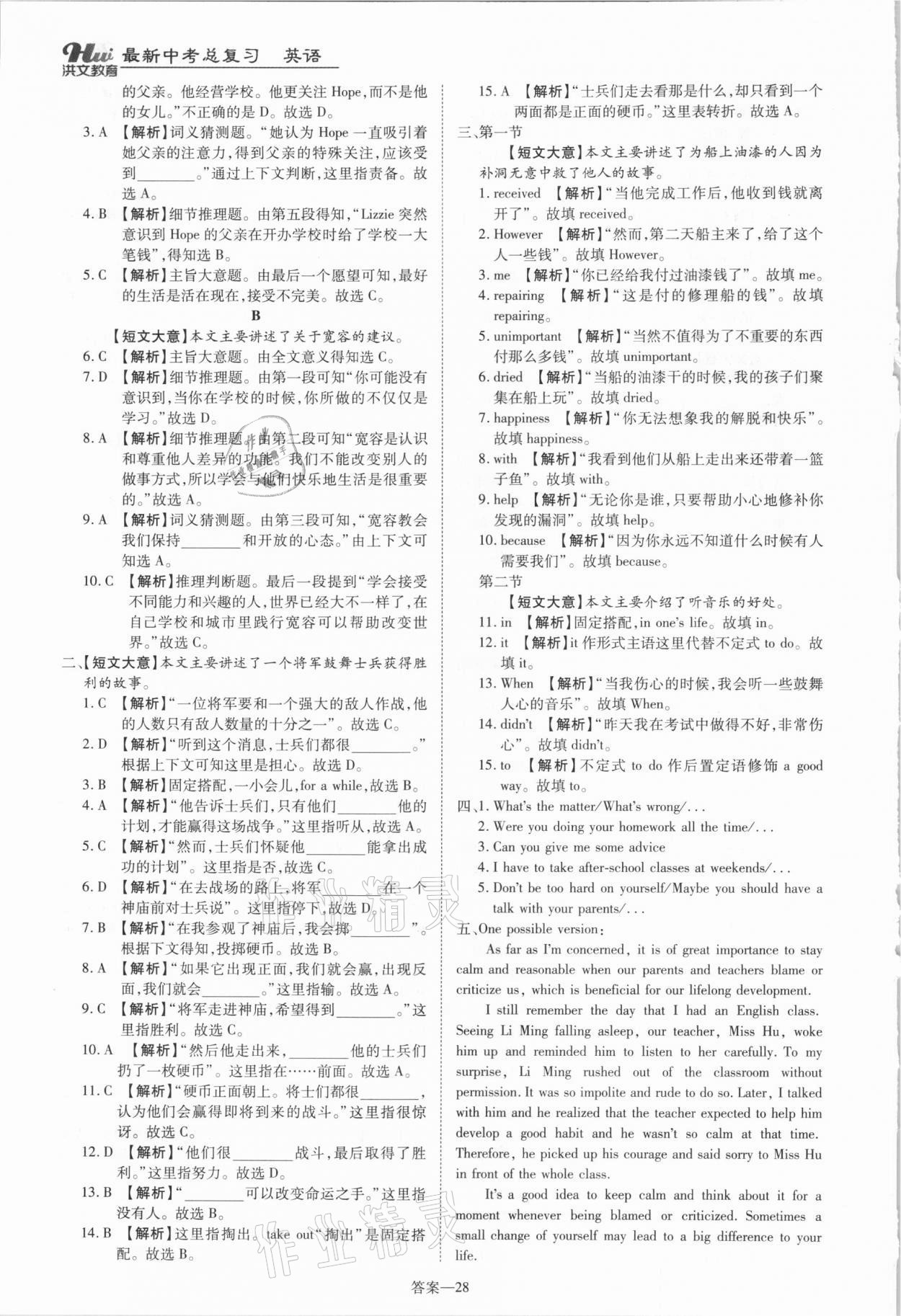 注:目前有些书本章节名称可能整理的还不是很完善,但都是按照顺序排列的,请同学们按照顺序仔细查找。练习册 2021年洪文教育最新中考英语人教版河南专版 答案主要是用来给同学们做完题方便对答案用的,请勿直接抄袭。