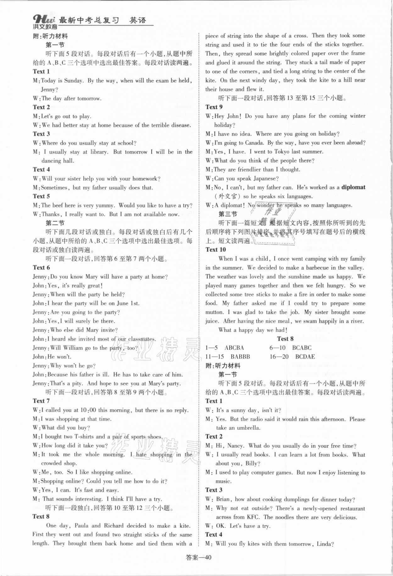 注:目前有些书本章节名称可能整理的还不是很完善,但都是按照顺序排列的,请同学们按照顺序仔细查找。练习册 2021年洪文教育最新中考英语人教版河南专版 答案主要是用来给同学们做完题方便对答案用的,请勿直接抄袭。