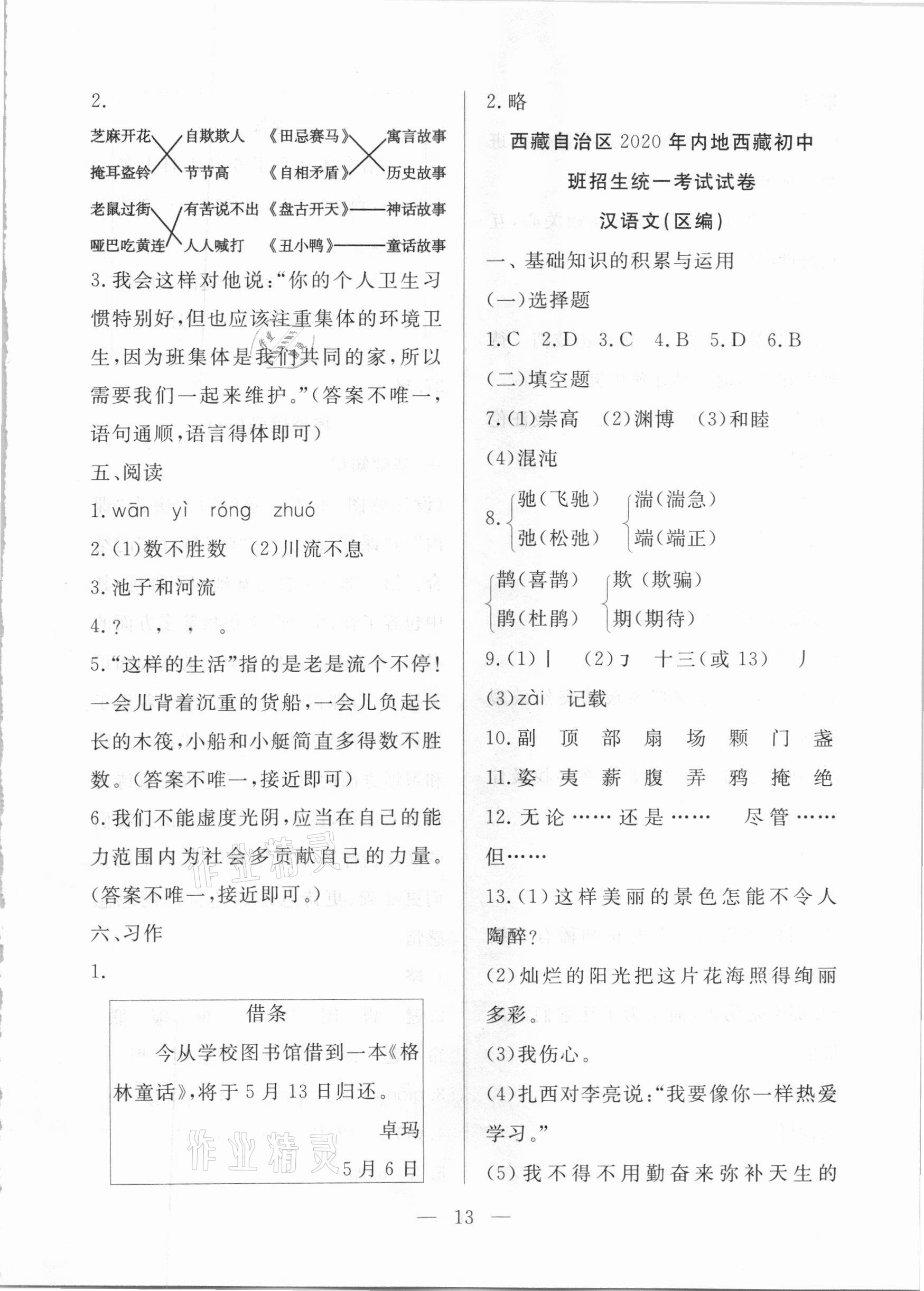 注:目前有些书本章节名称可能整理的还不是很完善,但都是按照顺序排列的,请同学们按照顺序仔细查找。练习册 2021年高原学子小升初总复习六年级语文西藏专版 答案主要是用来给同学们做完题方便对答案用的,请勿直接抄袭。