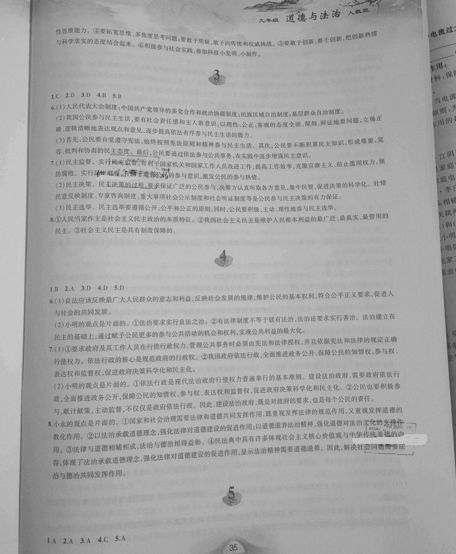 注:目前有些书本章节名称可能整理的还不是很完善,但都是按照顺序排列的,请同学们按照顺序仔细查找。练习册 2021年寒假作业九年级道德与法治人教版黄山书社 答案主要是用来给同学们做完题方便对答案用的,请勿直接抄袭。