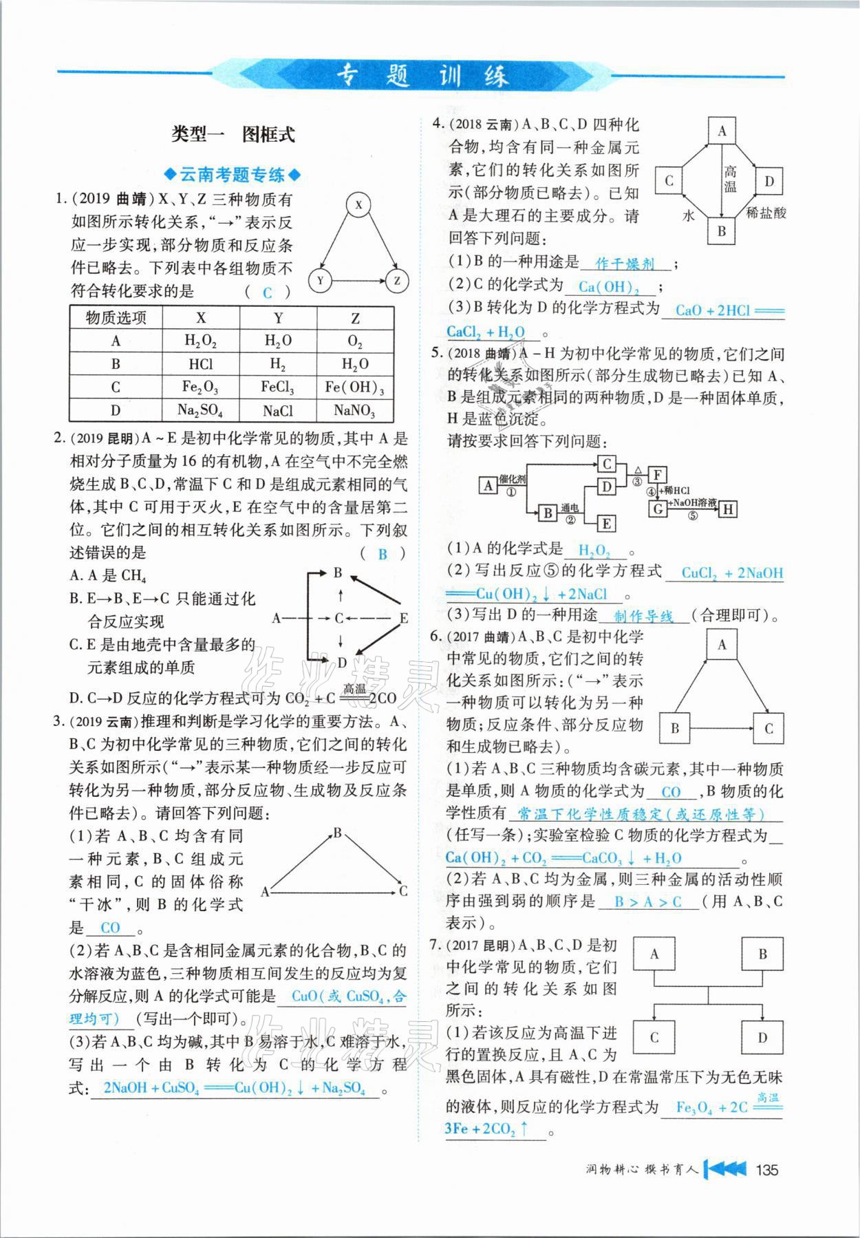 注:目前有些书本章节名称可能整理的还不是很完善,但都是按照顺序排列的,请同学们按照顺序仔细查找。练习册 2021年721新中考新方向化学云南专版 答案主要是用来给同学们做完题方便对答案用的,请勿直接抄袭。