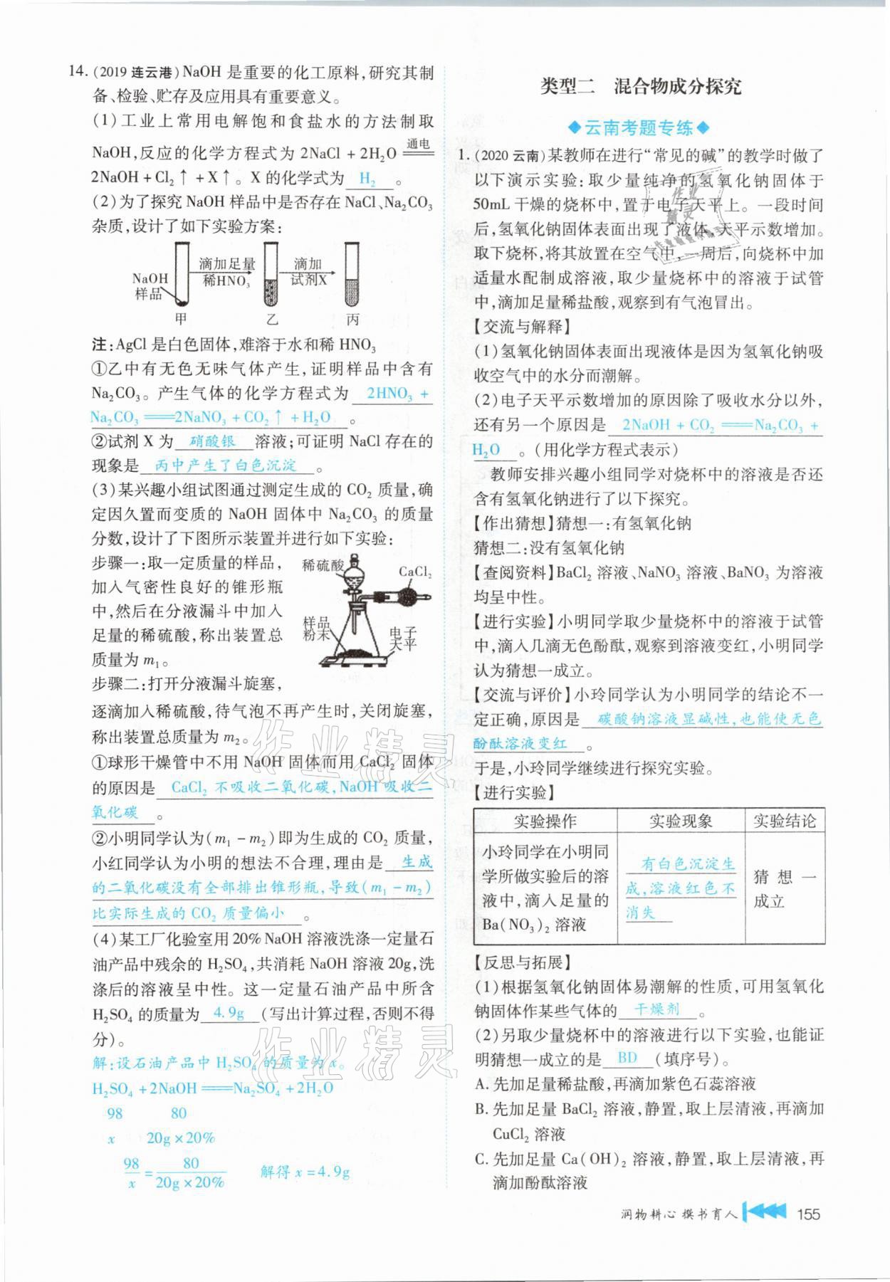 注:目前有些书本章节名称可能整理的还不是很完善,但都是按照顺序排列的,请同学们按照顺序仔细查找。练习册 2021年721新中考新方向化学云南专版 答案主要是用来给同学们做完题方便对答案用的,请勿直接抄袭。