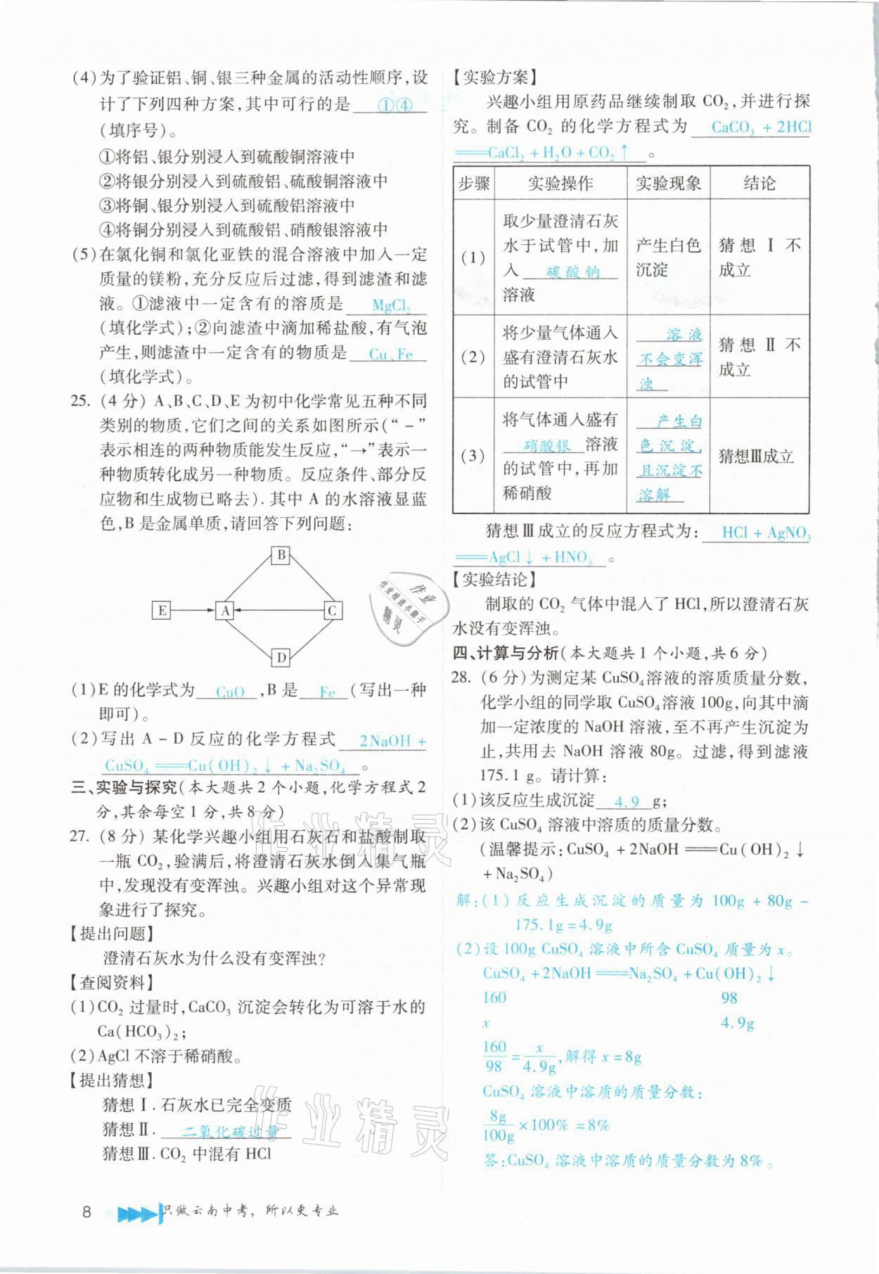 注:目前有些书本章节名称可能整理的还不是很完善,但都是按照顺序排列的,请同学们按照顺序仔细查找。练习册 2021年721新中考新方向化学云南专版 答案主要是用来给同学们做完题方便对答案用的,请勿直接抄袭。