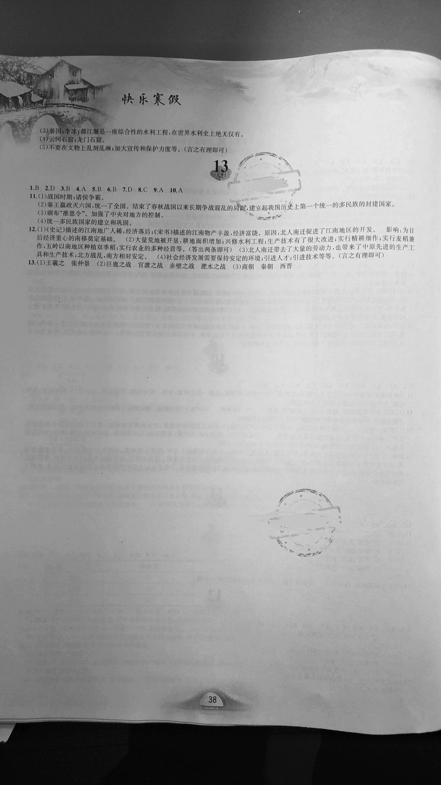 注:目前有些书本章节名称可能整理的还不是很完善,但都是按照顺序排列的,请同学们按照顺序仔细查找。练习册 2021年快乐寒假七年级历史寒假作业人教版 答案主要是用来给同学们做完题方便对答案用的,请勿直接抄袭。