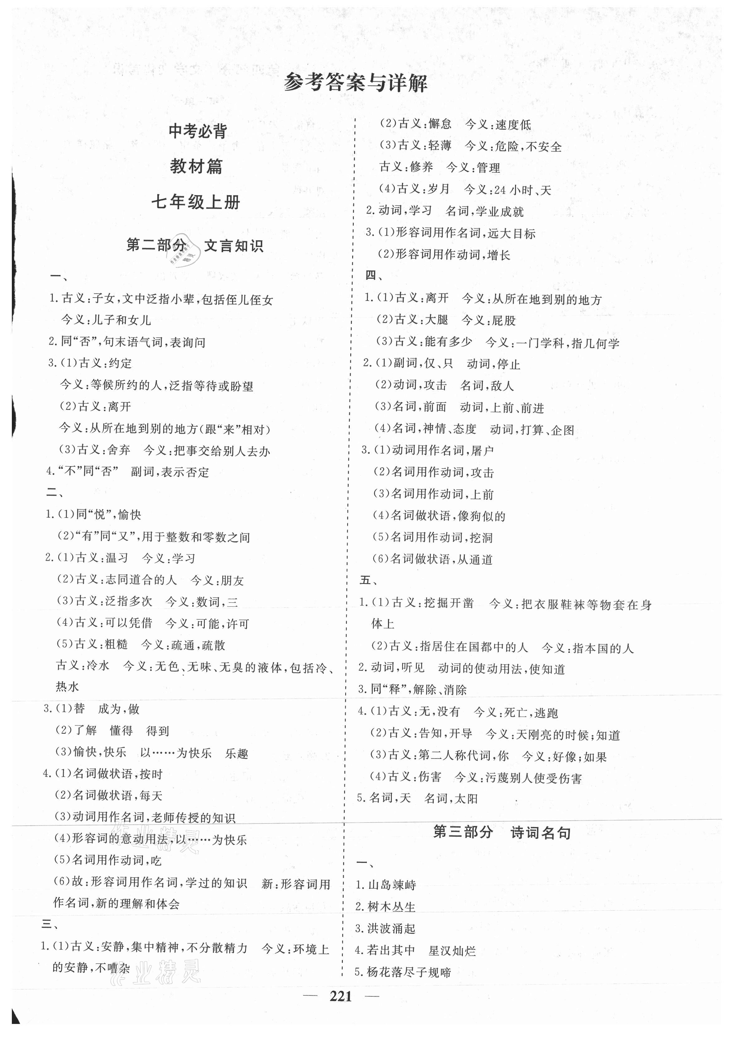 注:目前有些书本章节名称可能整理的还不是很完善,但都是按照顺序排列的,请同学们按照顺序仔细查找。练习册 2021年初中毕业班综合训练语文 答案主要是用来给同学们做完题方便对答案用的,请勿直接抄袭。