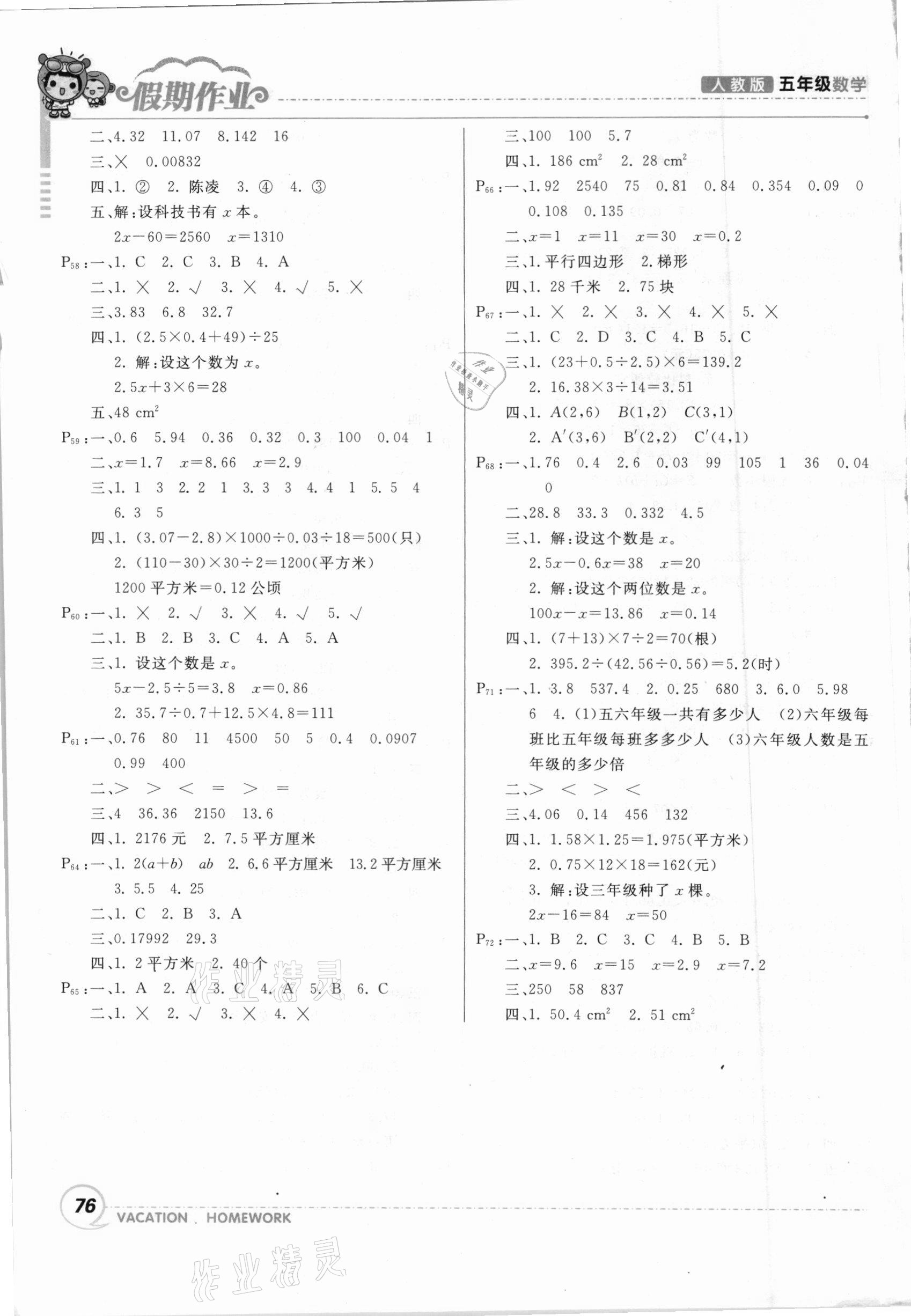 2021年寒假作业五年级数学人教版甘肃少年儿童出版社