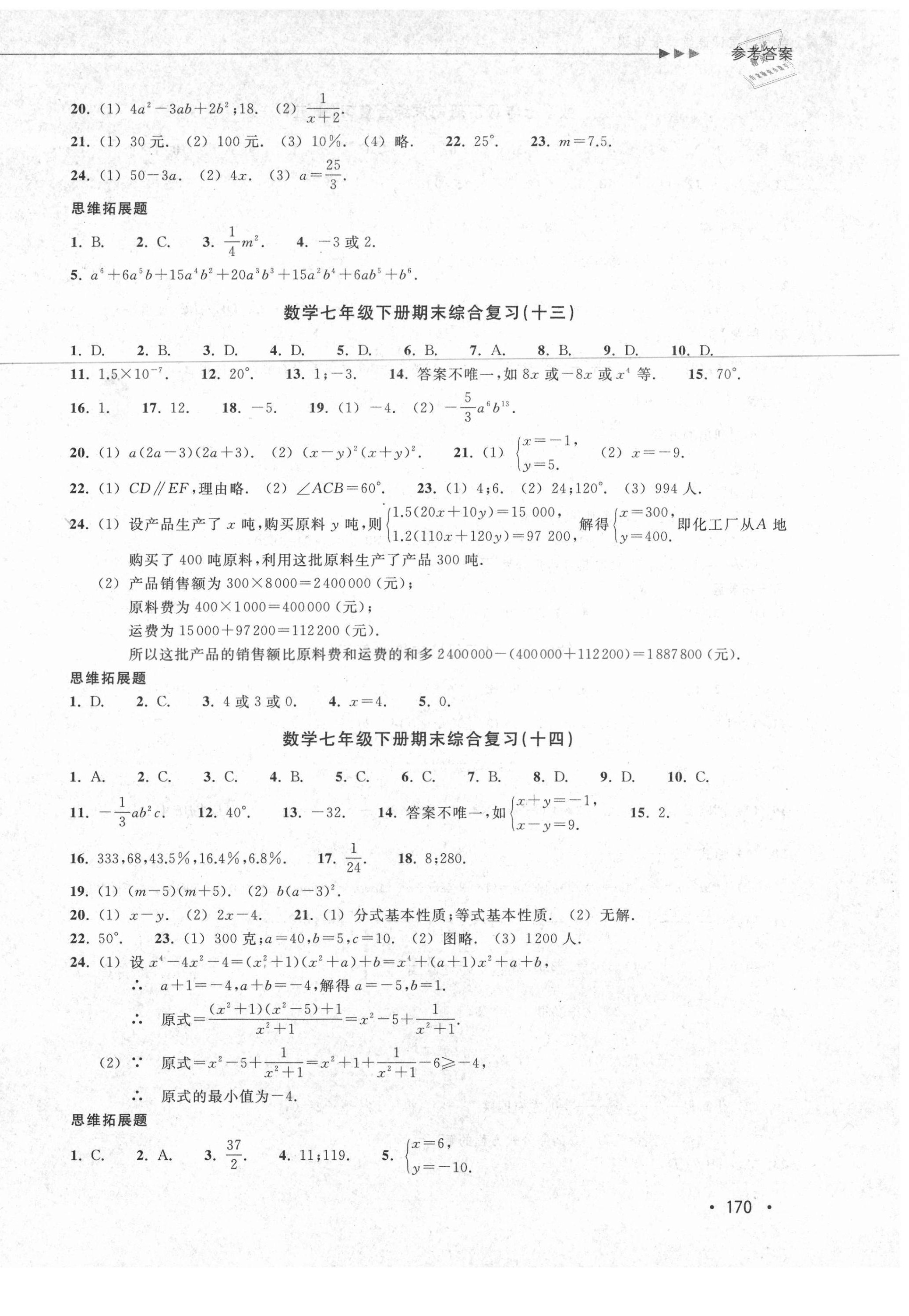注:目前有些书本章节名称可能整理的还不是很完善,但都是按照顺序排列的,请同学们按照顺序仔细查找。练习册 2021年分层课课练七年级数学下册浙教版 答案主要是用来给同学们做完题方便对答案用的,请勿直接抄袭。