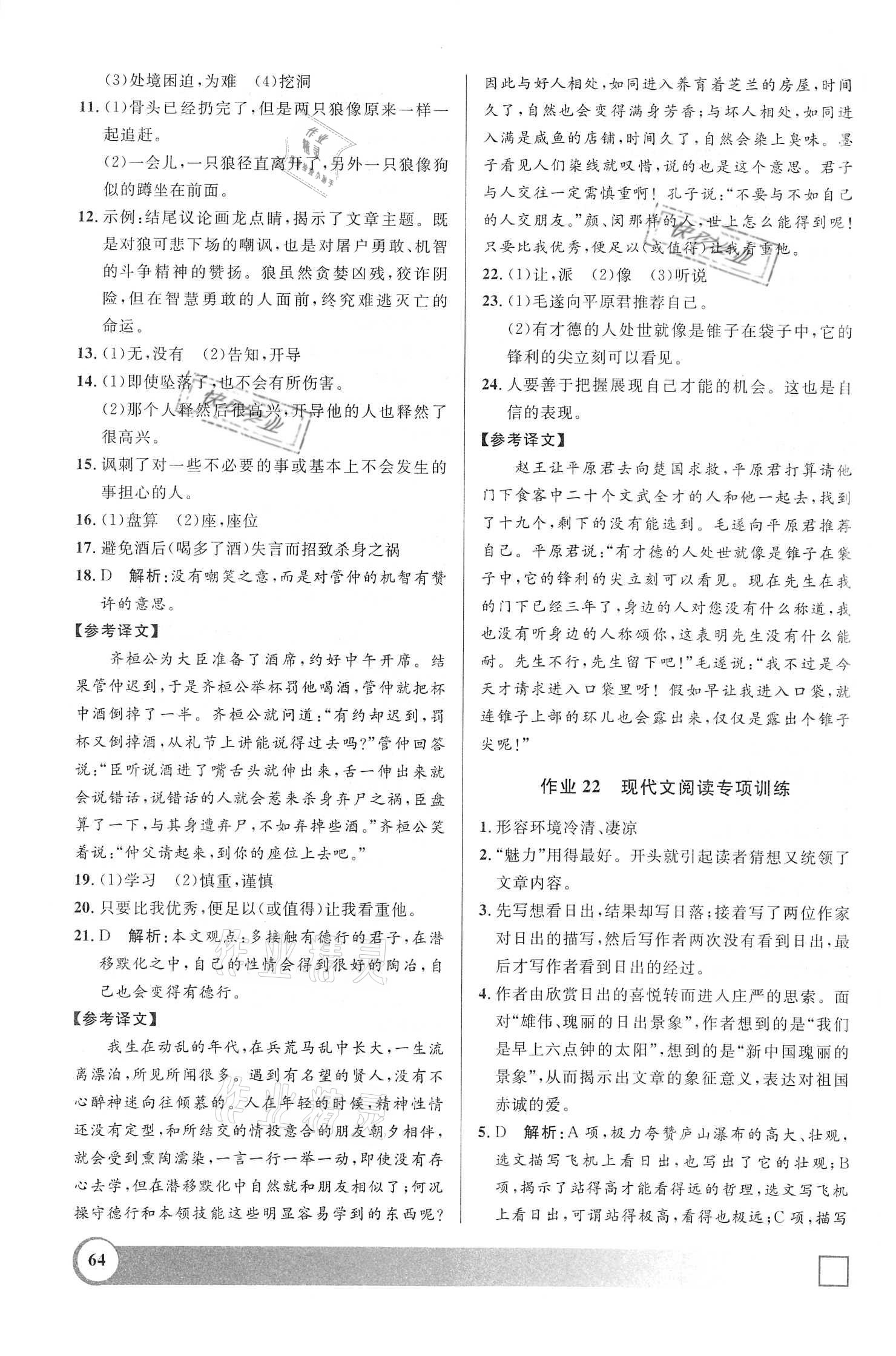 2021年钟书金牌寒假作业导与练七年级语文部编版上海专版