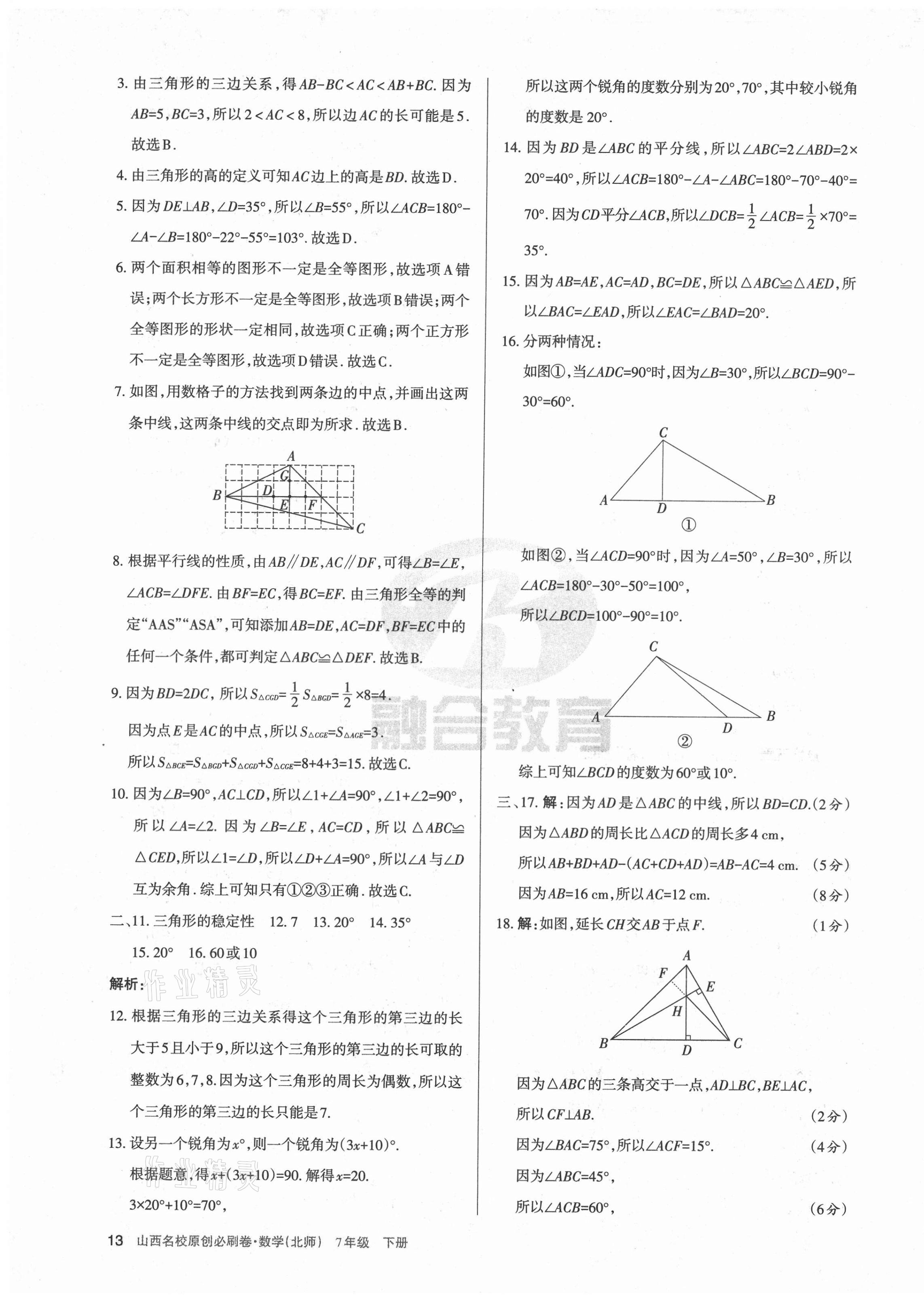 注:目前有些书本章节名称可能整理的还不是很完善,但都是按照顺序排列的,请同学们按照顺序仔细查找。练习册 2021年山西名校原创必刷卷七年级数学下册北师大版 答案主要是用来给同学们做完题方便对答案用的,请勿直接抄袭。