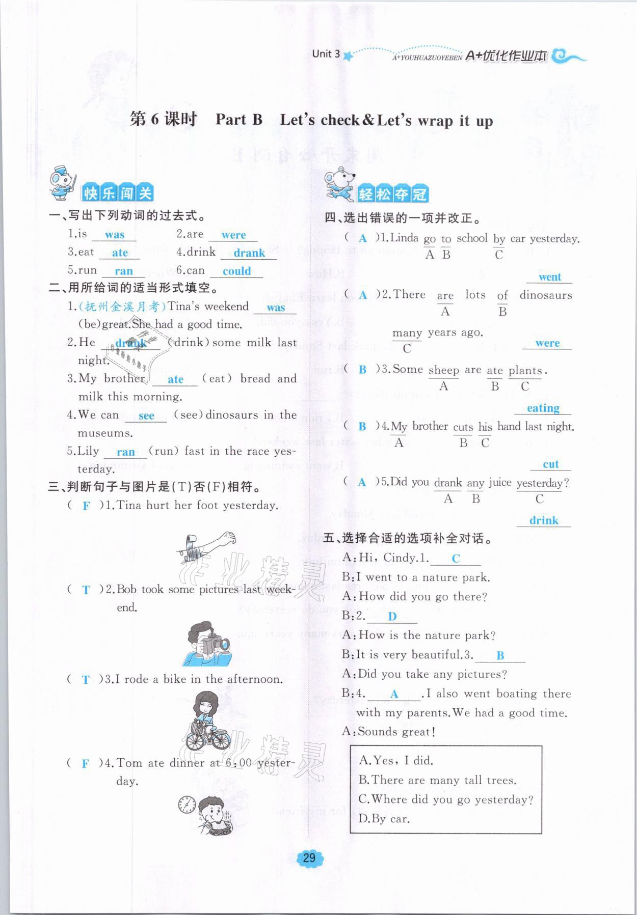 注:目前有些书本章节名称可能整理的还不是很完善,但都是按照顺序排列的,请同学们按照顺序仔细查找。练习册 2021年A加优化作业本六年级英语下册人教PEP版江西专版 答案主要是用来给同学们做完题方便对答案用的,请勿直接抄袭。