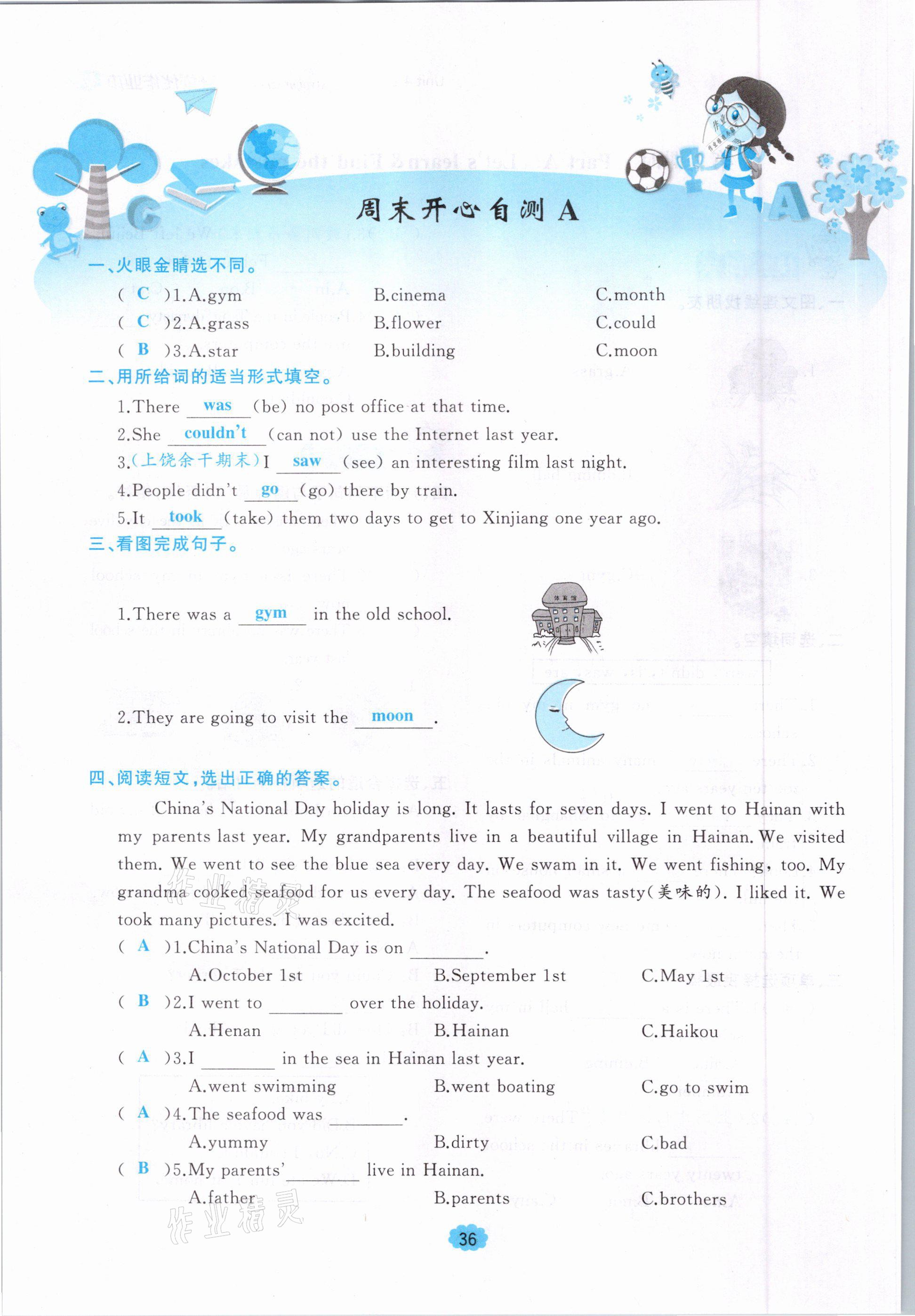 注:目前有些书本章节名称可能整理的还不是很完善,但都是按照顺序排列的,请同学们按照顺序仔细查找。练习册 2021年A加优化作业本六年级英语下册人教PEP版江西专版 答案主要是用来给同学们做完题方便对答案用的,请勿直接抄袭。