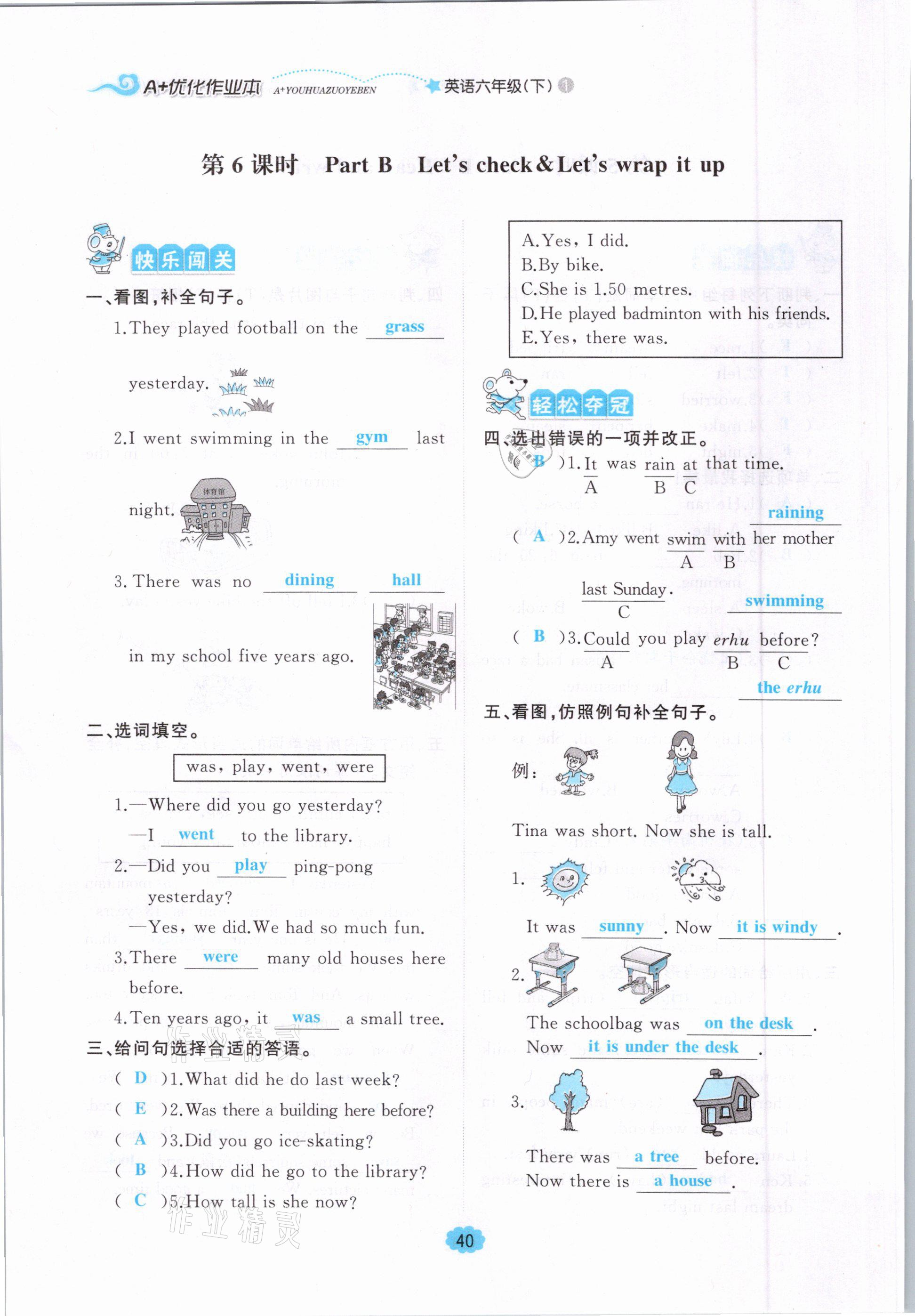 注:目前有些书本章节名称可能整理的还不是很完善,但都是按照顺序排列的,请同学们按照顺序仔细查找。练习册 2021年A加优化作业本六年级英语下册人教PEP版江西专版 答案主要是用来给同学们做完题方便对答案用的,请勿直接抄袭。