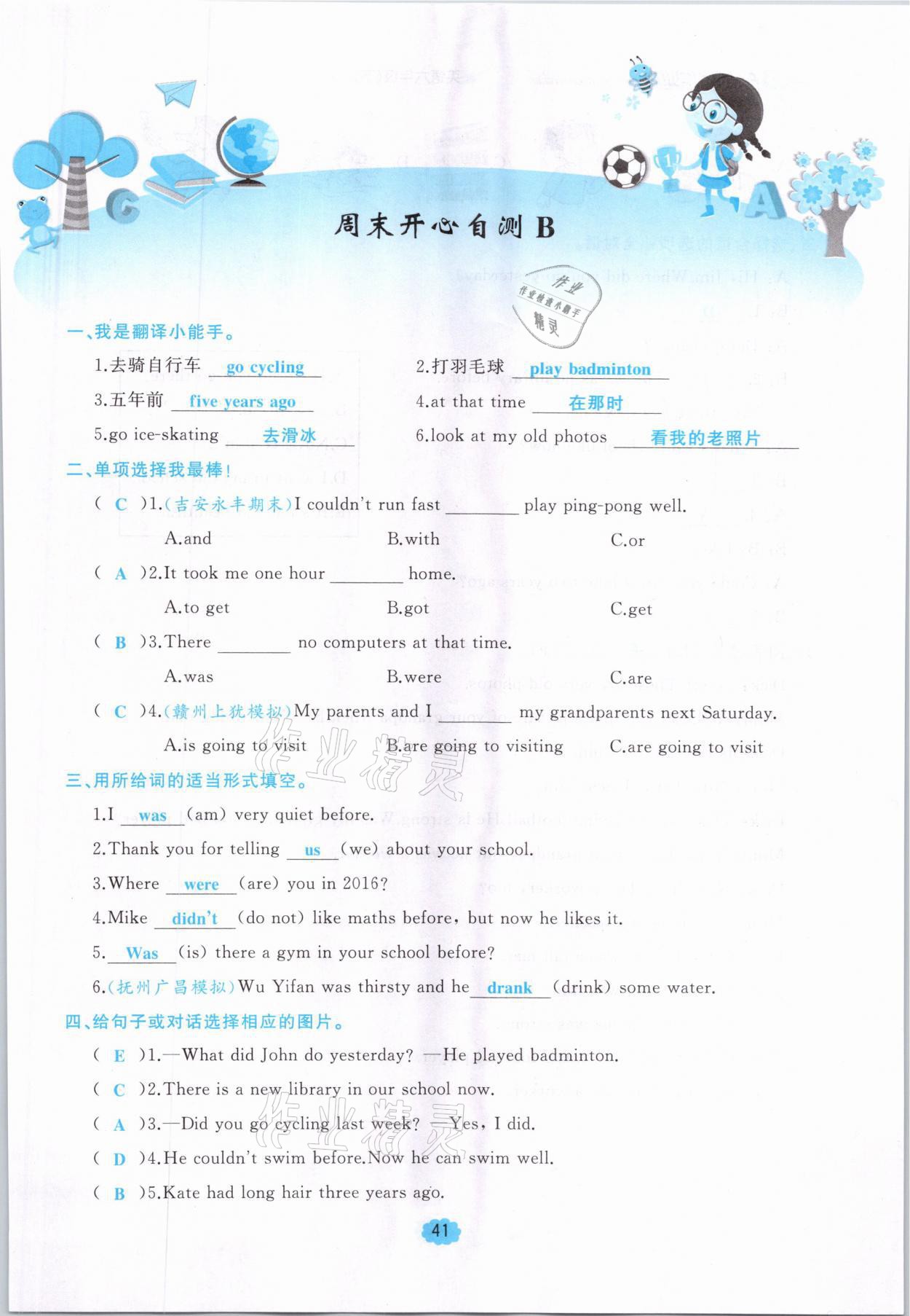 注:目前有些书本章节名称可能整理的还不是很完善,但都是按照顺序排列的,请同学们按照顺序仔细查找。练习册 2021年A加优化作业本六年级英语下册人教PEP版江西专版 答案主要是用来给同学们做完题方便对答案用的,请勿直接抄袭。